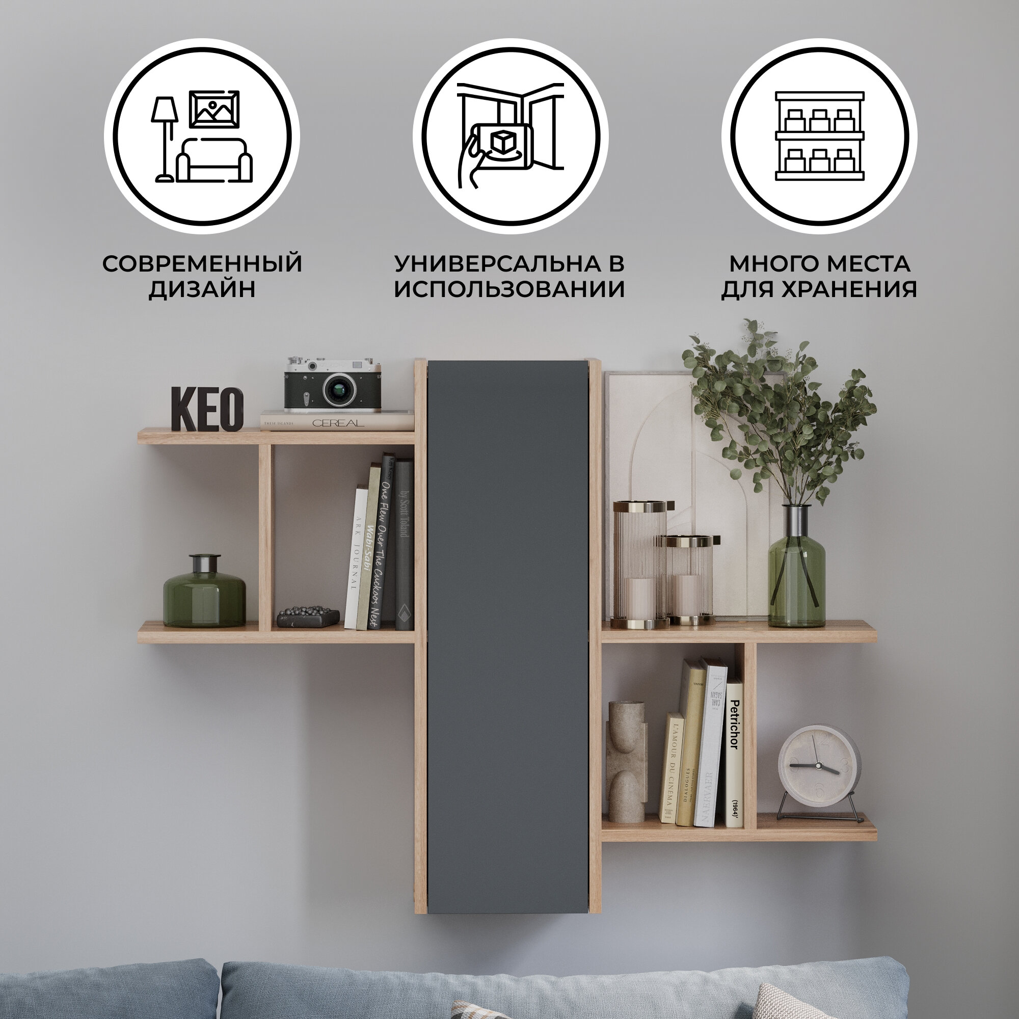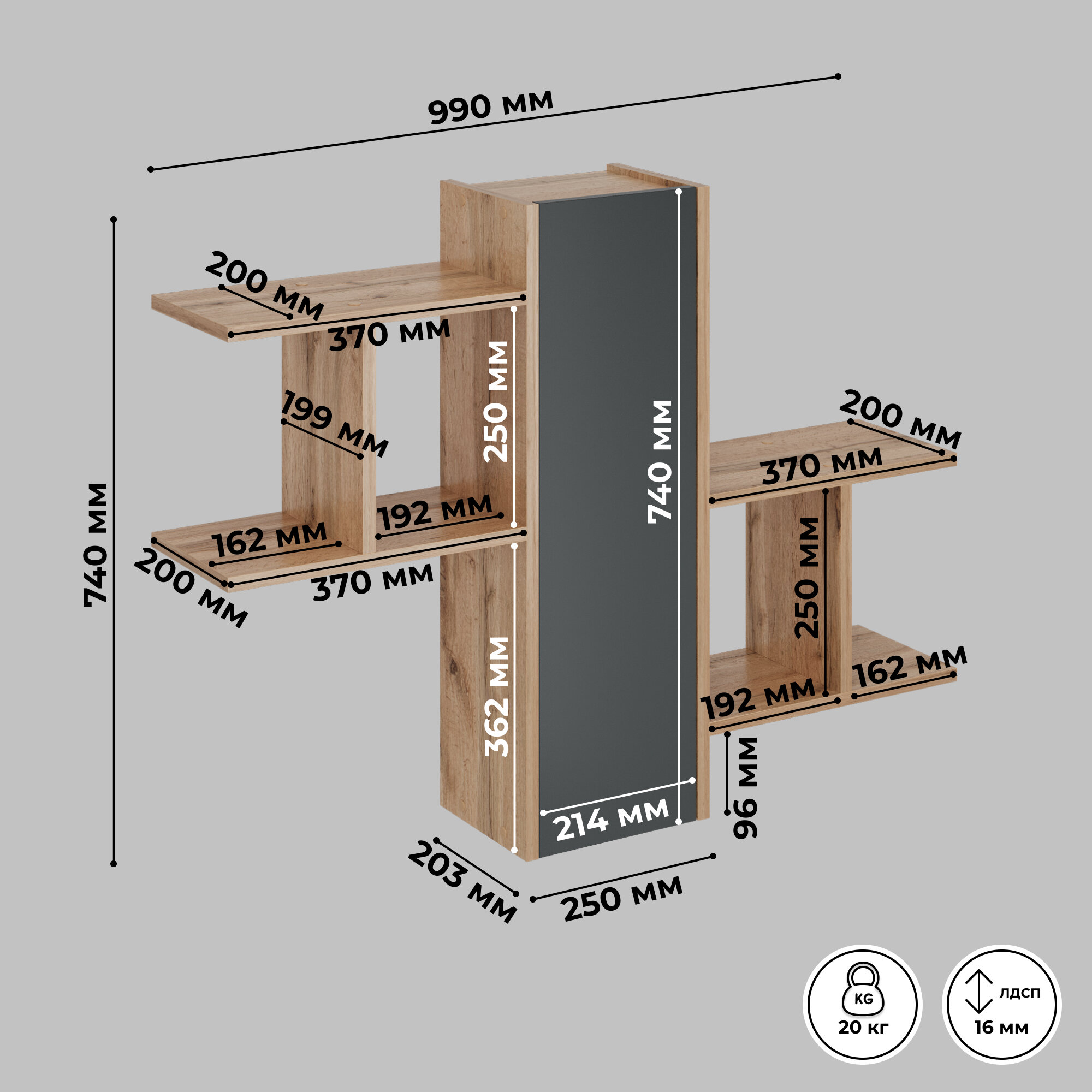 Купить Полка настенная 74х20х99 антрацит-Дуб вотан навесная деревянная для книг цветов лофт в спальню гостиную Кео ГРС-ПЛК-203