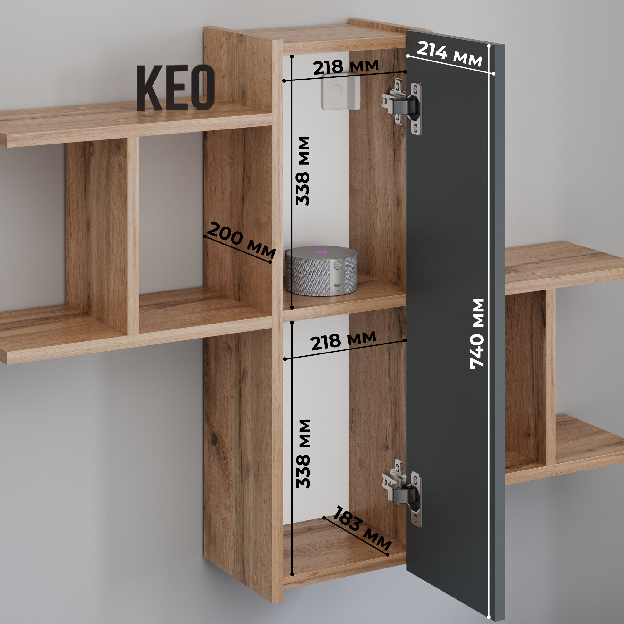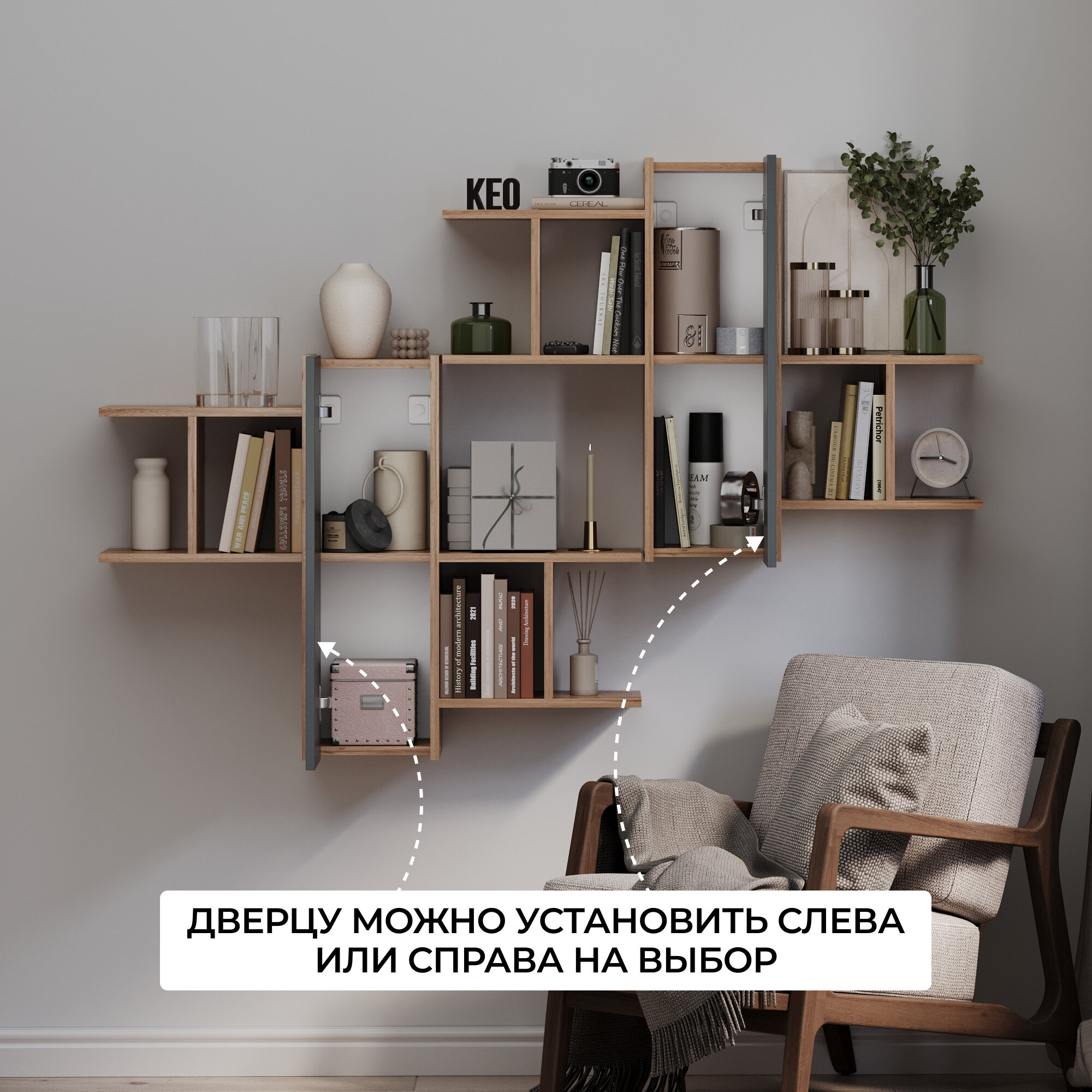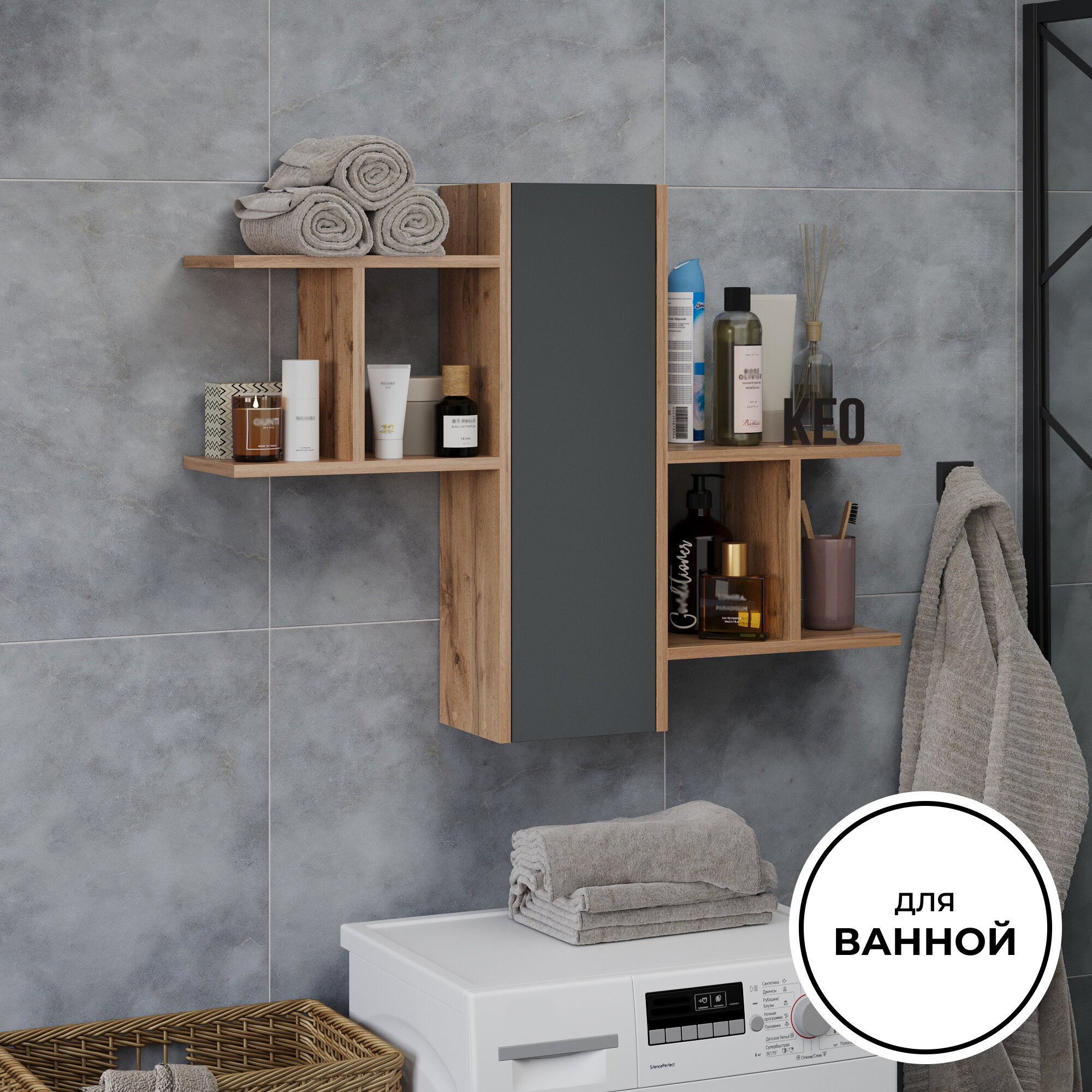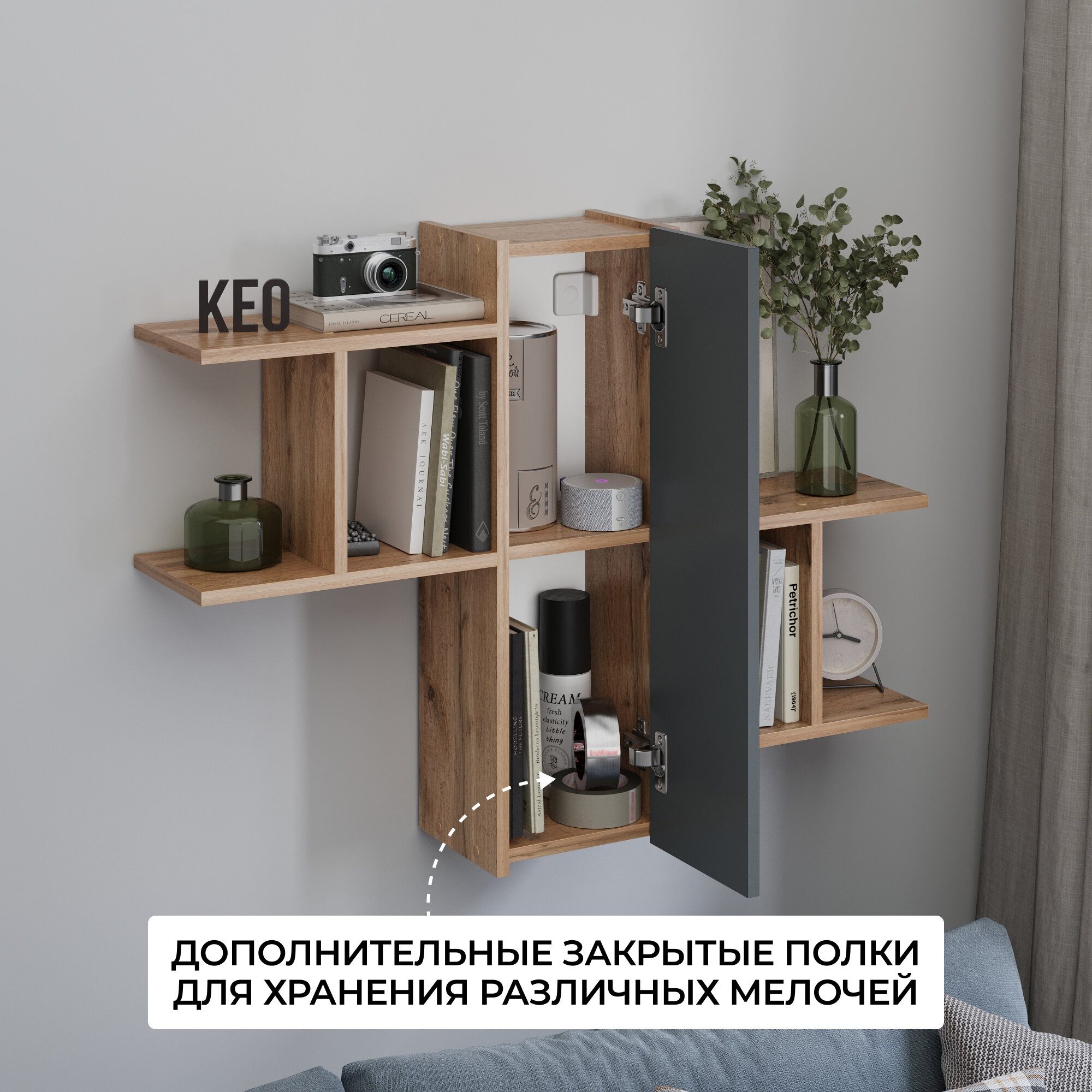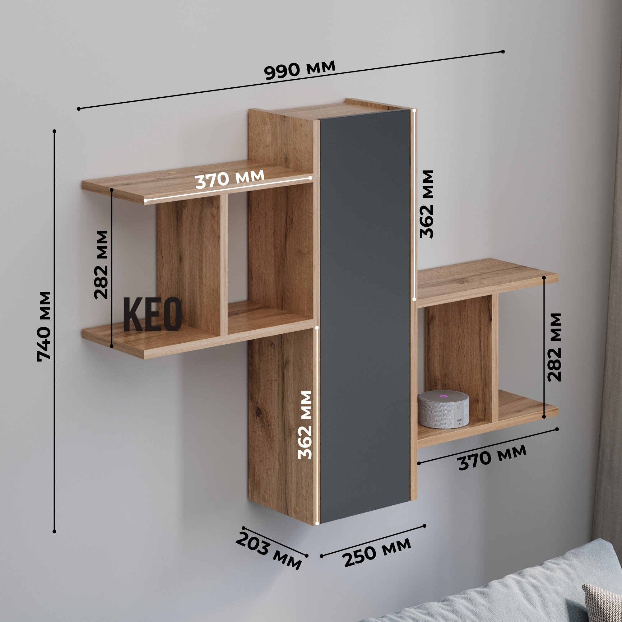 Полка настенная 74х20х99 антрацит-Дуб вотан навесная деревянная для книг цветов лофт в спальню гостиную Кео ГРС-ПЛК-203 интересное: