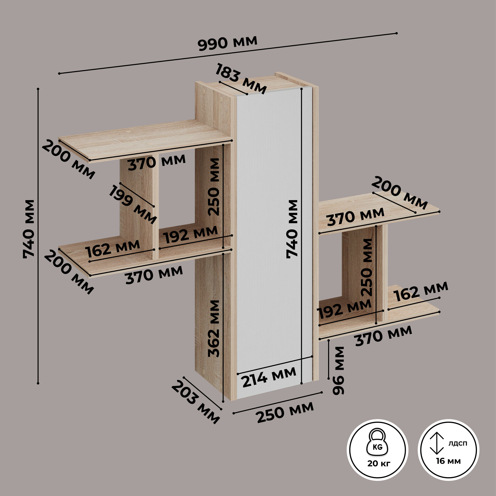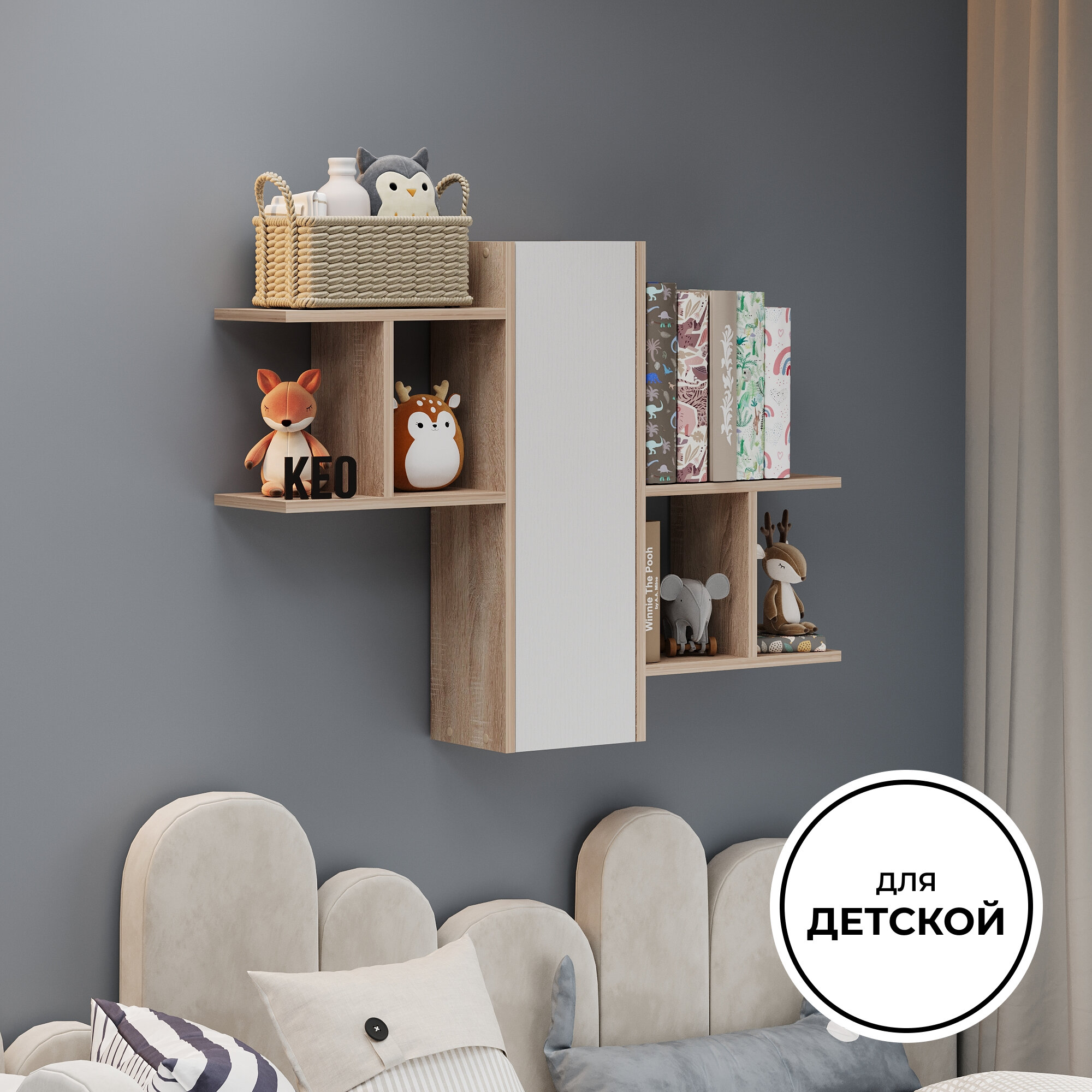 Полка настенная 74х20х99см белый дуб сонома навесная деревянная для книг цветов лофт в спальню гостиную Кео ГРС-ПЛК-203 интересное: