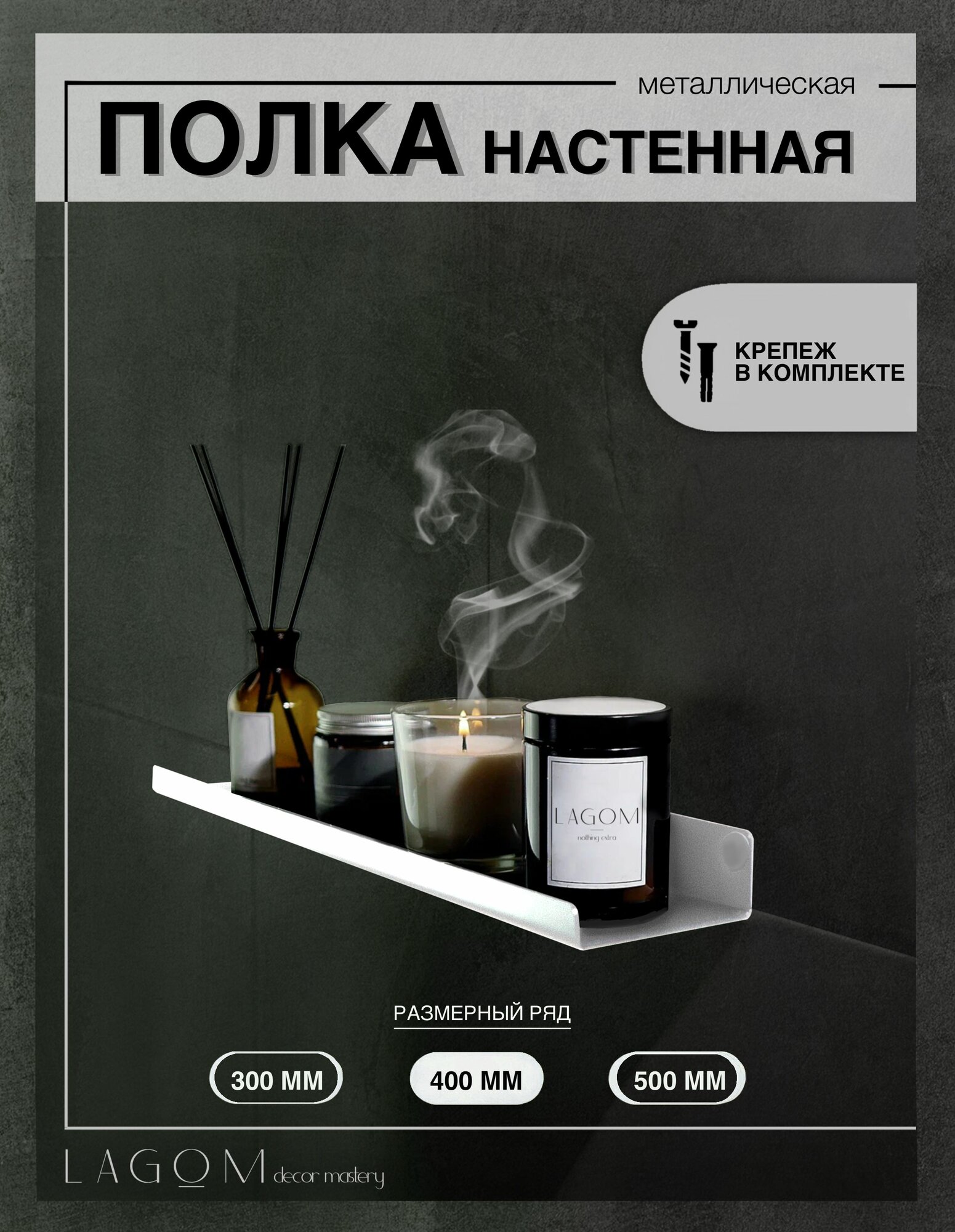 Полка настенная металлическая Dash 40 см белая