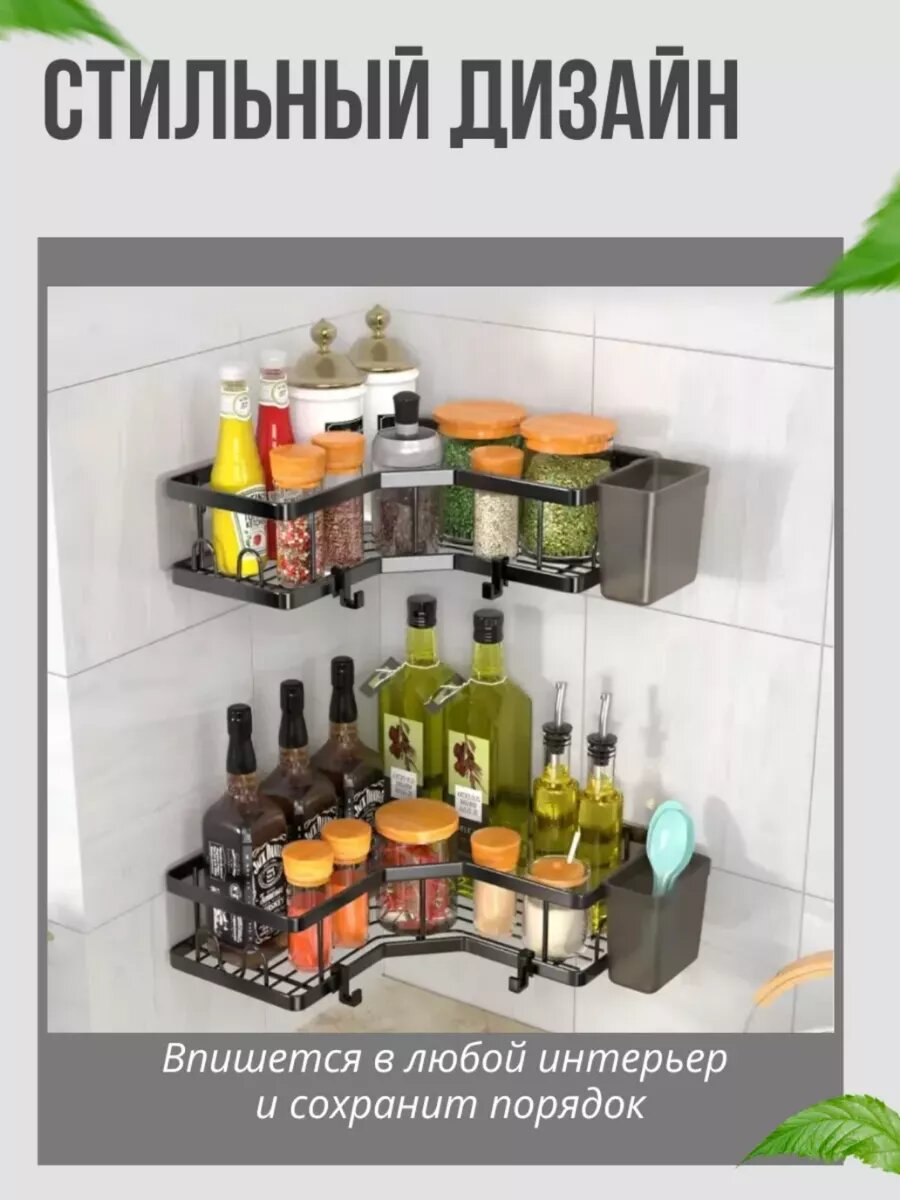 Полки кухонные настенные, без сверления, для специй, для банок, большая нагрузка, 2 полки в комплекте интересное: