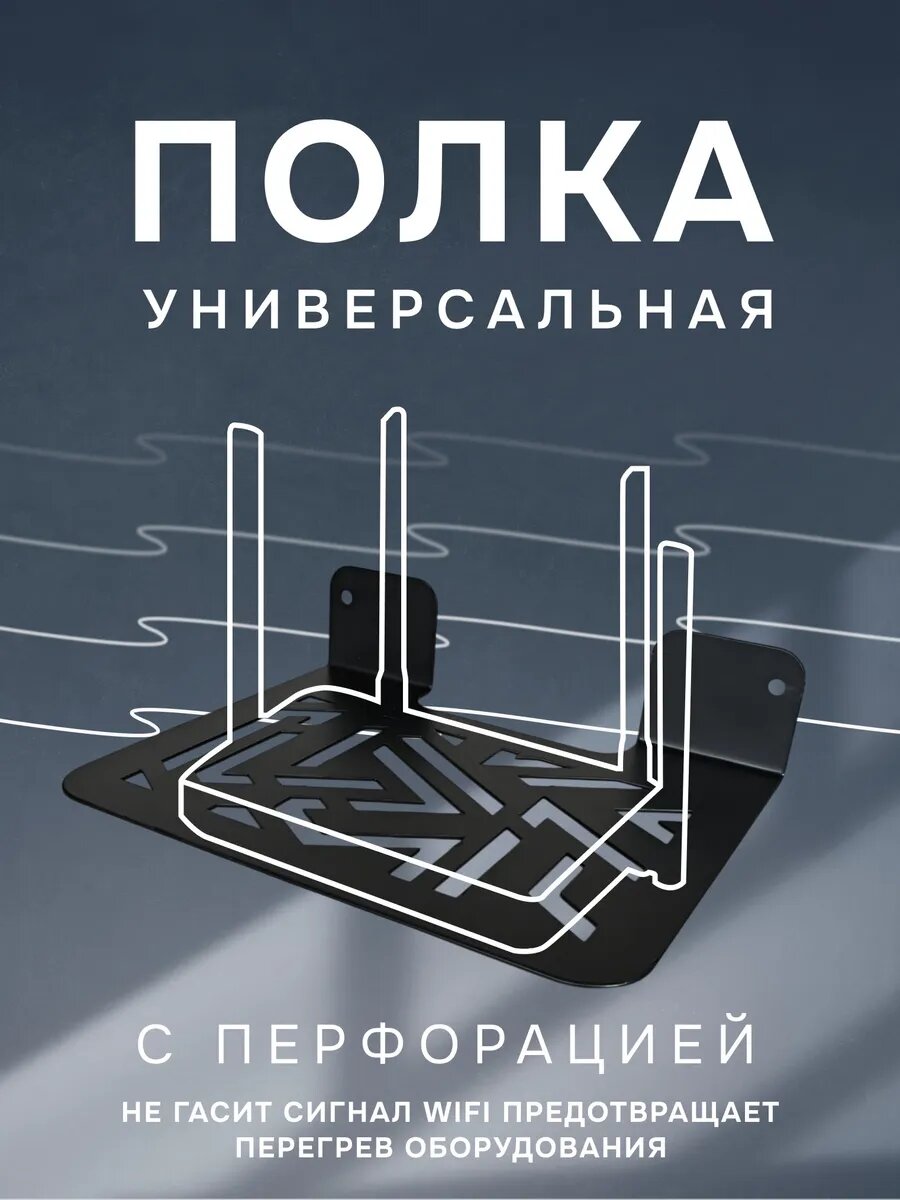 Полка для роутера wifi металлическая черная с перфорацией