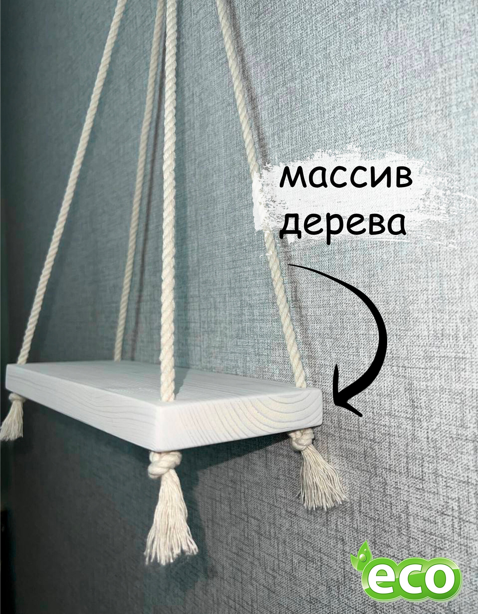 СохранитьПолка настенная прямая из дерева на веревках подвесная белая 24х10х38 см, комплект 1 шт. интересное: