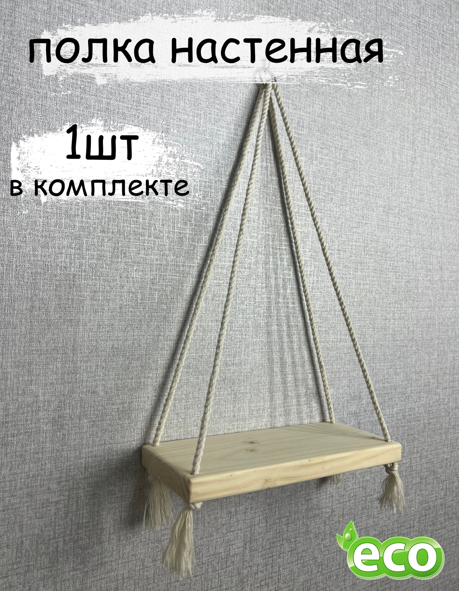 СохранитьПолка настенная прямая из дерева на веревках подвесная светлая 24х10х38 см, комплект 1 шт. интересное: