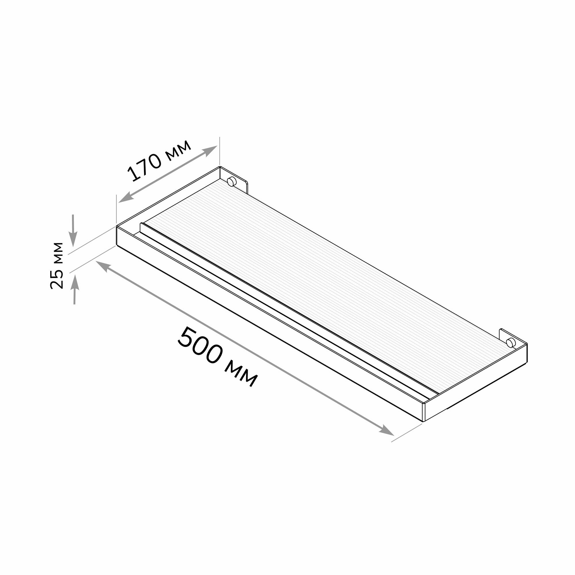 Полка с рифленым стеклом Ulitka Unit 60х13см, металл, закаленное стекло, цвет черный