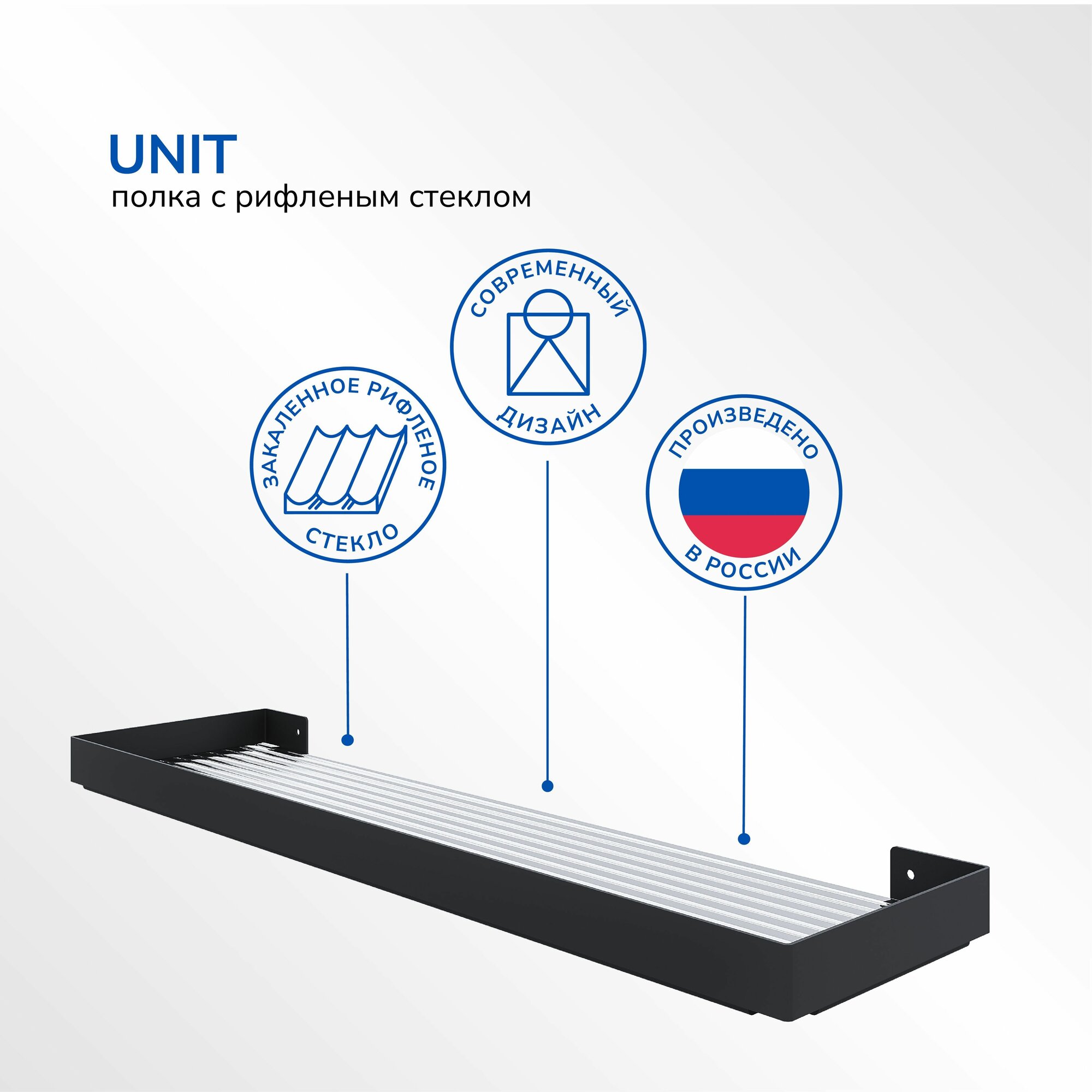 Полка с рифленым стеклом Ulitka Unit 60х13см, металл, закаленное стекло, цвет черный