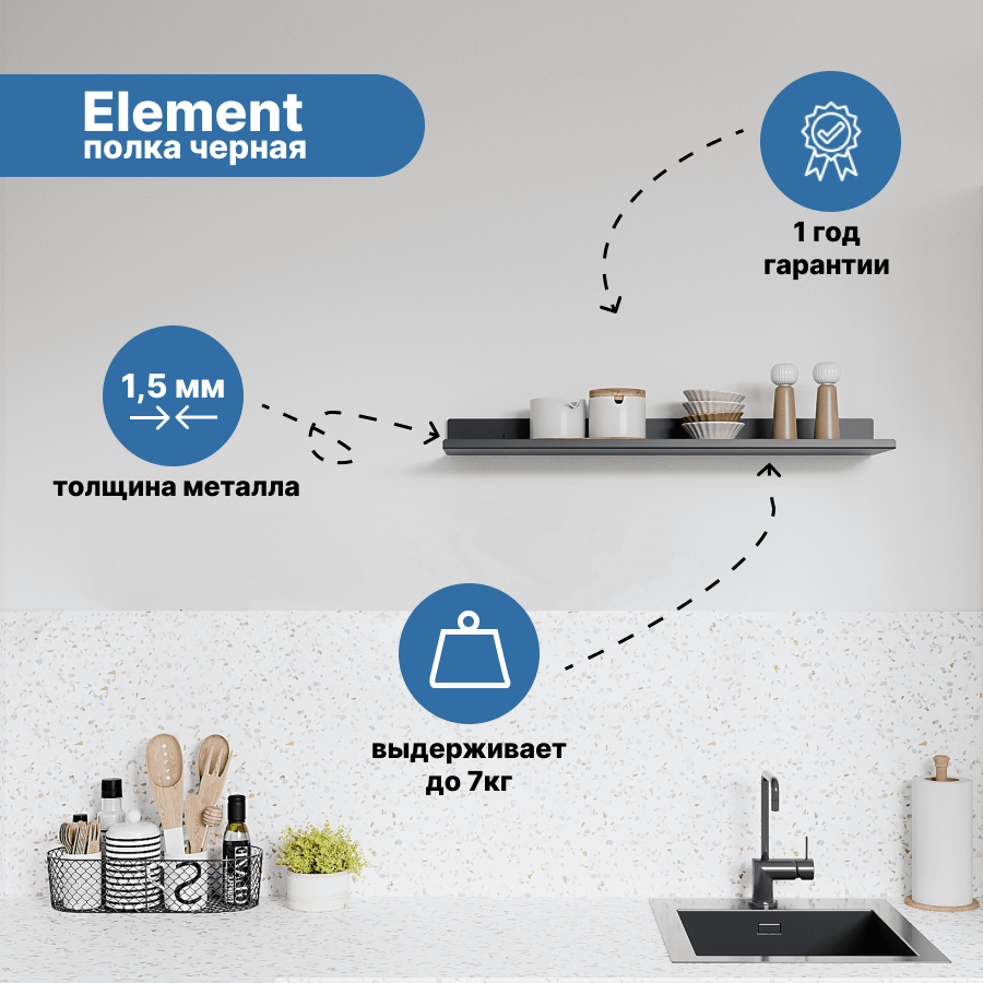 СохранитьПолка настенная универсальная 60 см. Element металл, цвет черный интересное: