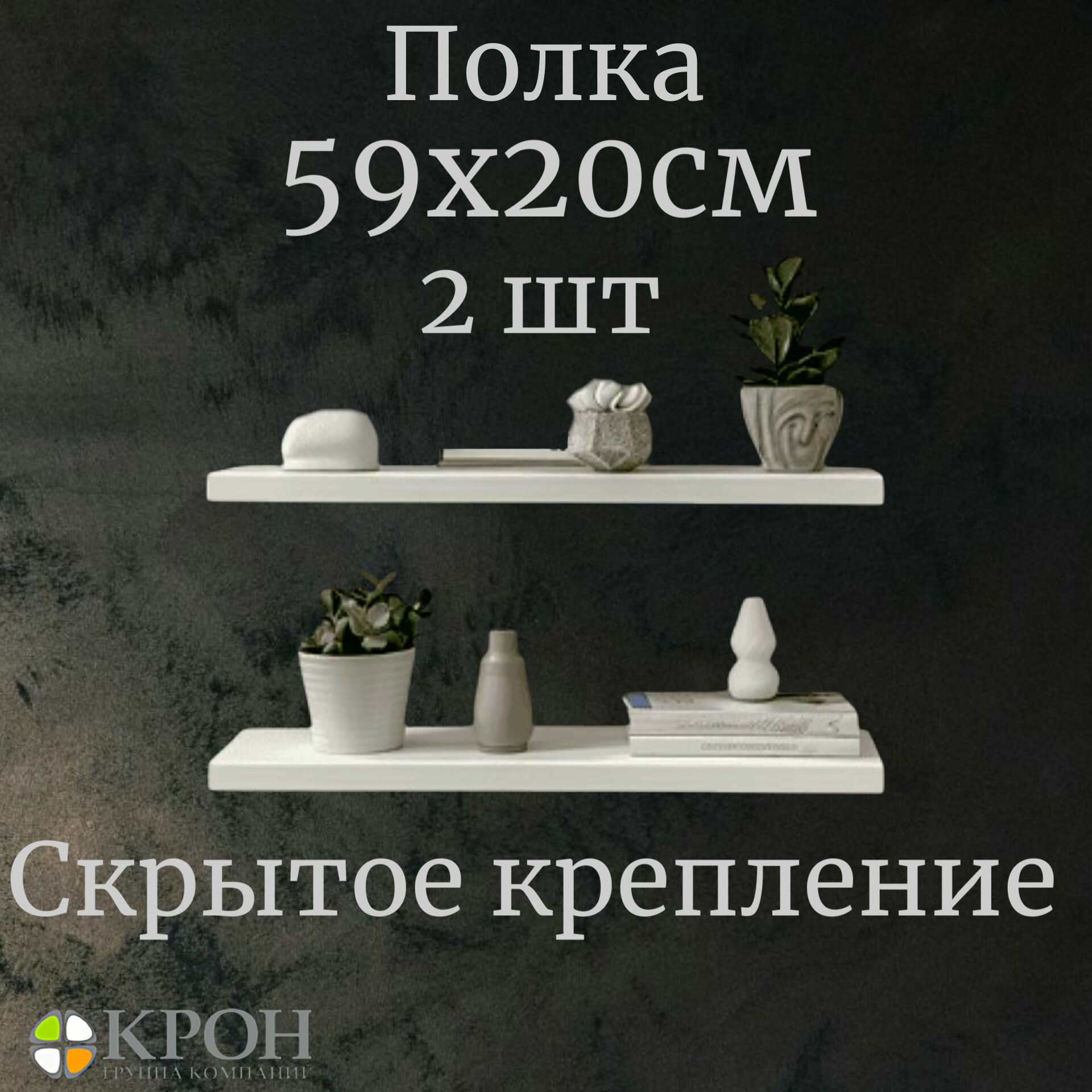 Купить Настенная полка "КРОН", парящая, белая, ЛДСП, 59x20х2 см, 2 шт