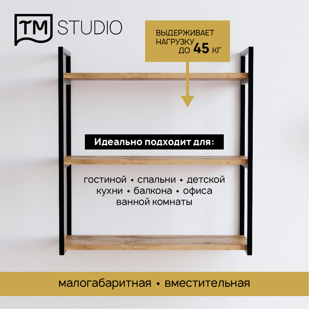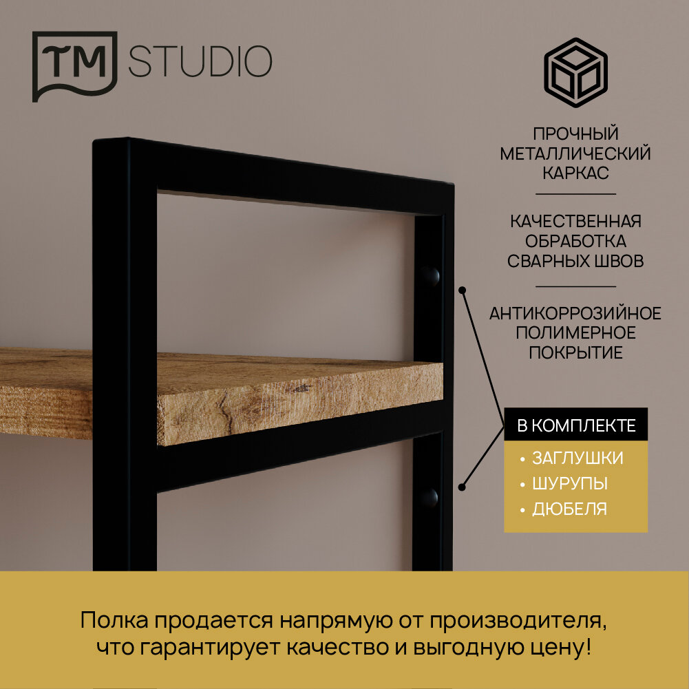 Полка настенная лофт TM Studio, Холидей, 60х23.3х23.3 см, черная