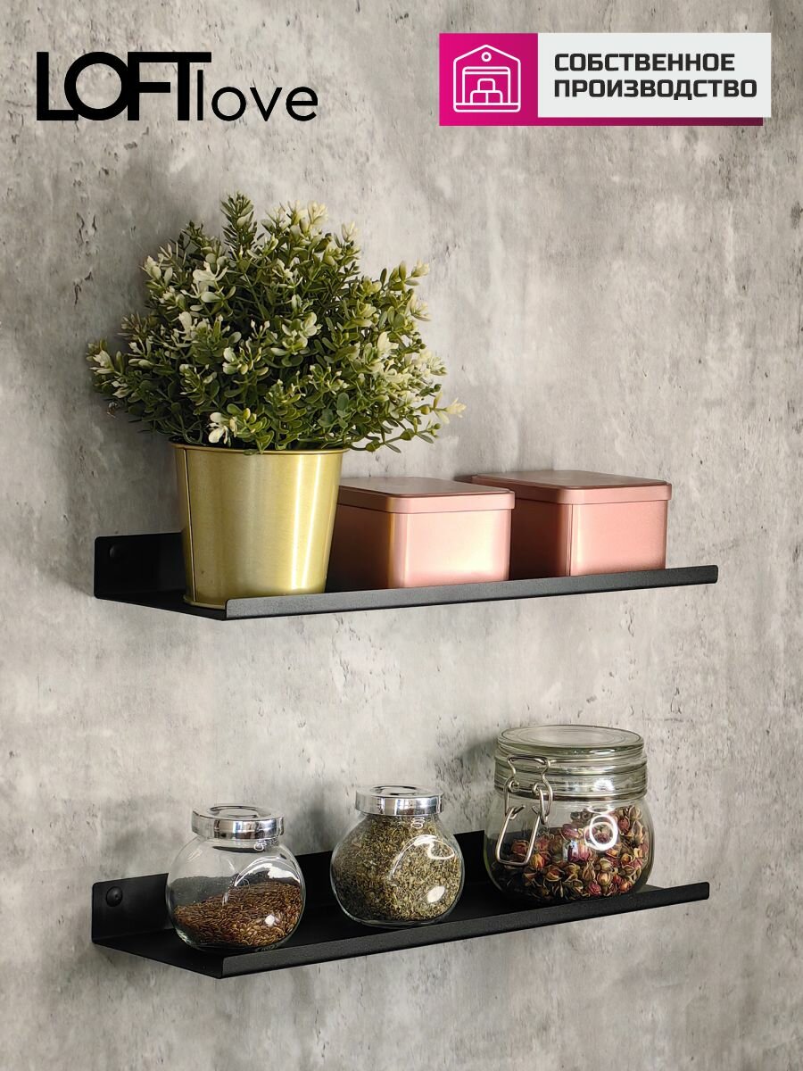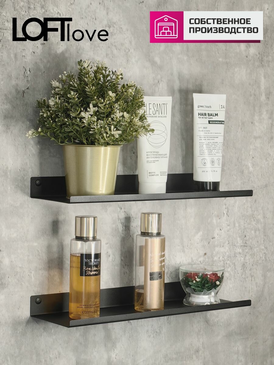 Полка настенная для ванной и кухни металл 2шт 40см чёрный интересное: