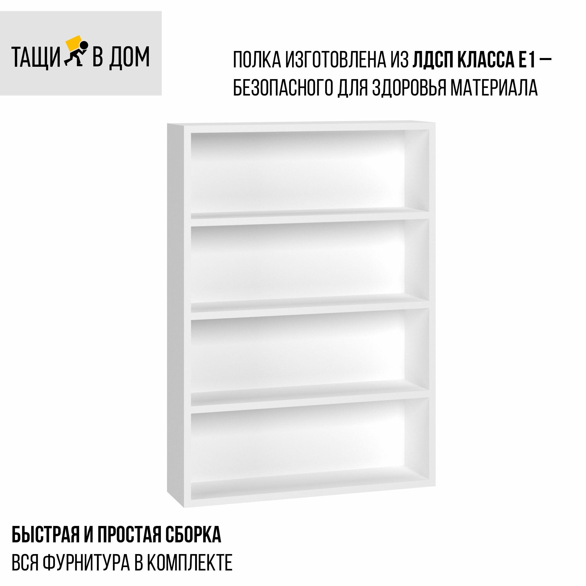 Полка настенная прямая навесная тащи В ДОМ, для книг, учебников, цветов, фотографий, белая, 60х15х84 см интересное: