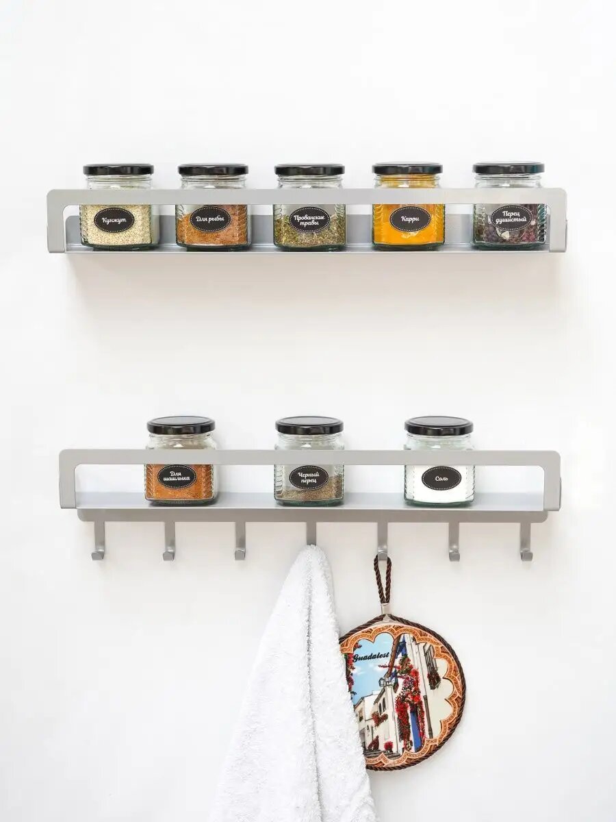 Полка для кухни металлическая ElectricLight 49,5х7,5. 2 полки с крючками. Металлик. интересное: