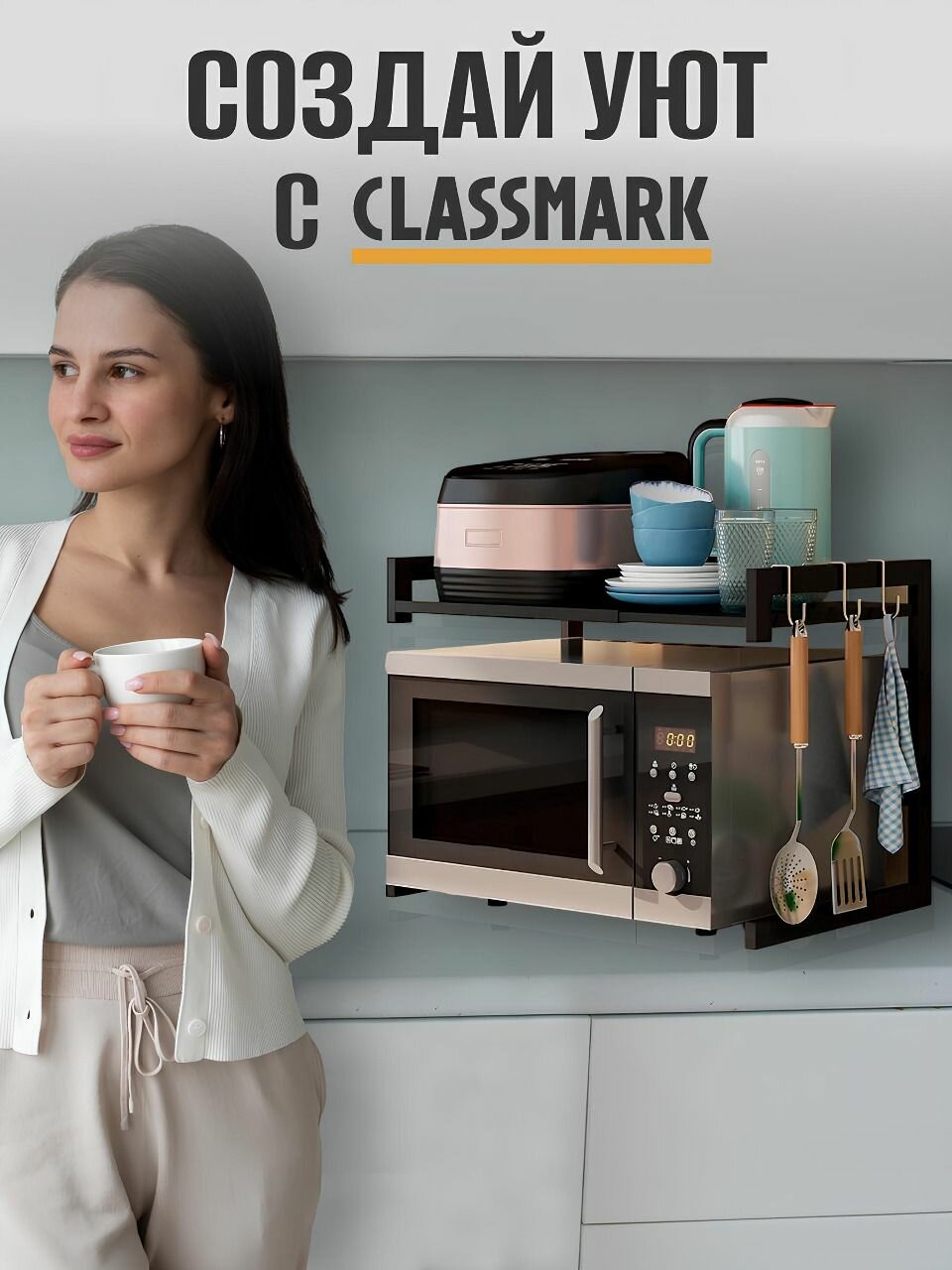 Полка для микроволновки настольная - раздвижная Classmark, черная интересное:
