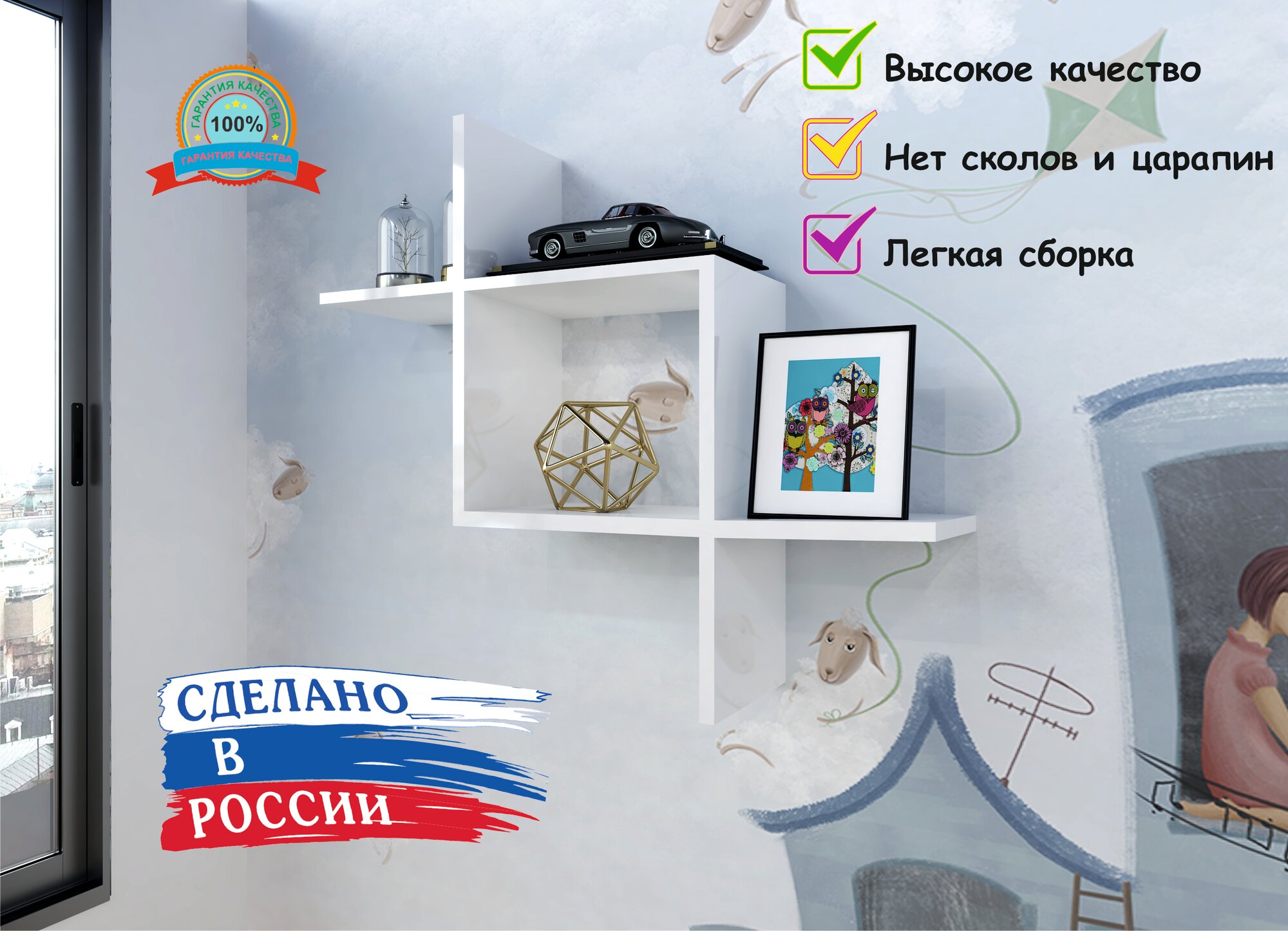 Полка навесная книжная подвесная на стену Белый интересное: