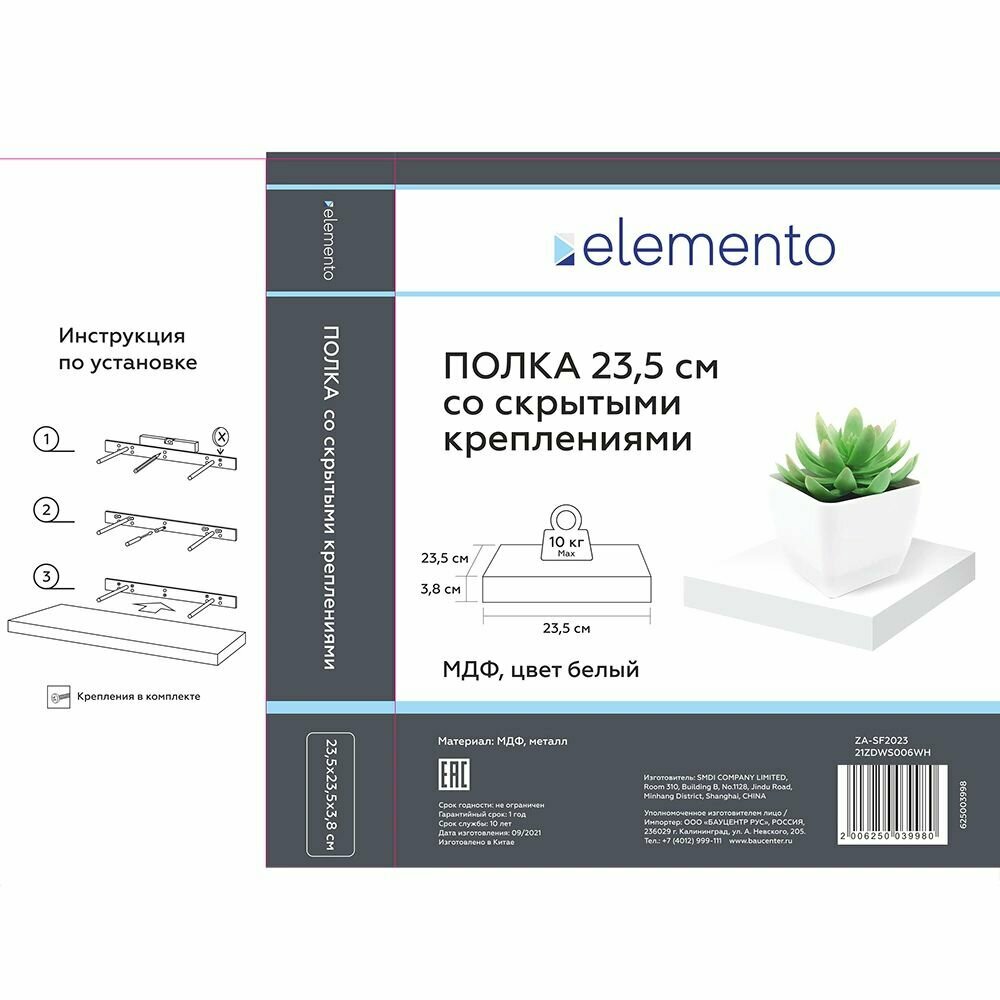 Полка со скрытым креплением 235х235х38 мм белая интересное: