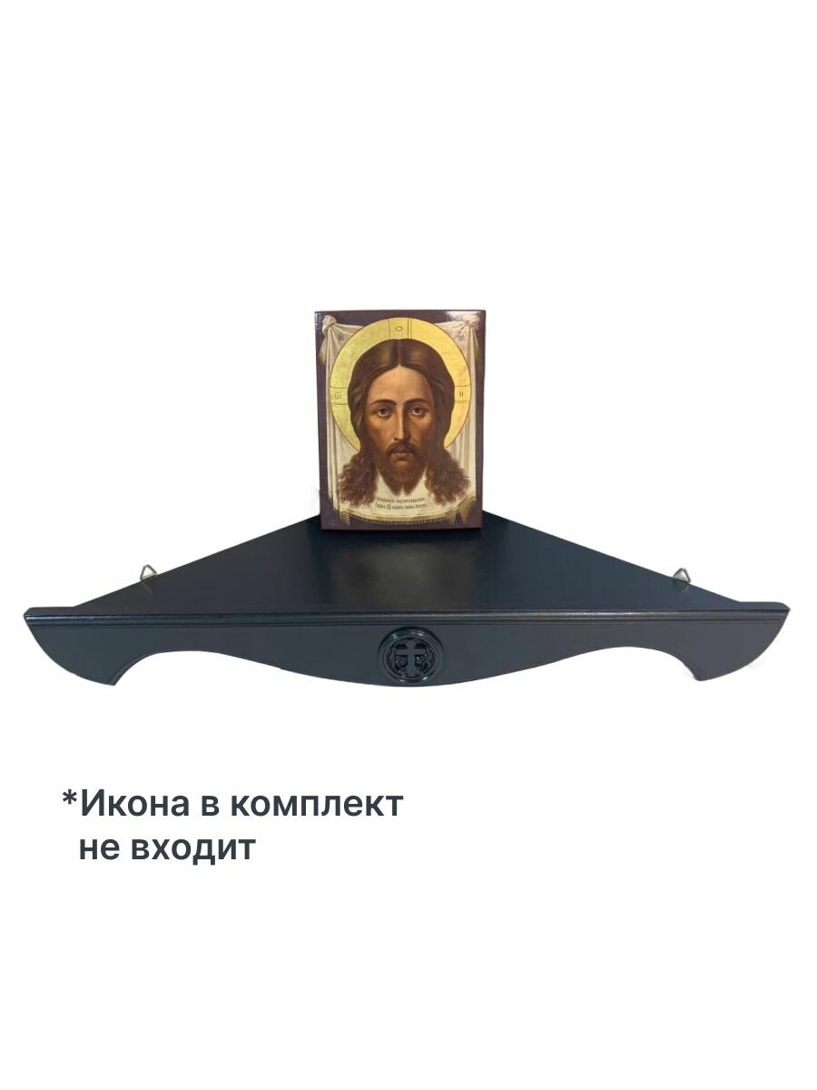 Полка угловая настенная для икон "Кольцо Крест" темно-серая 50см интересное: