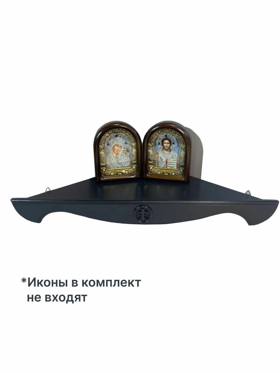 Полка угловая настенная для икон "Кольцо Крест" темно-серая 50см