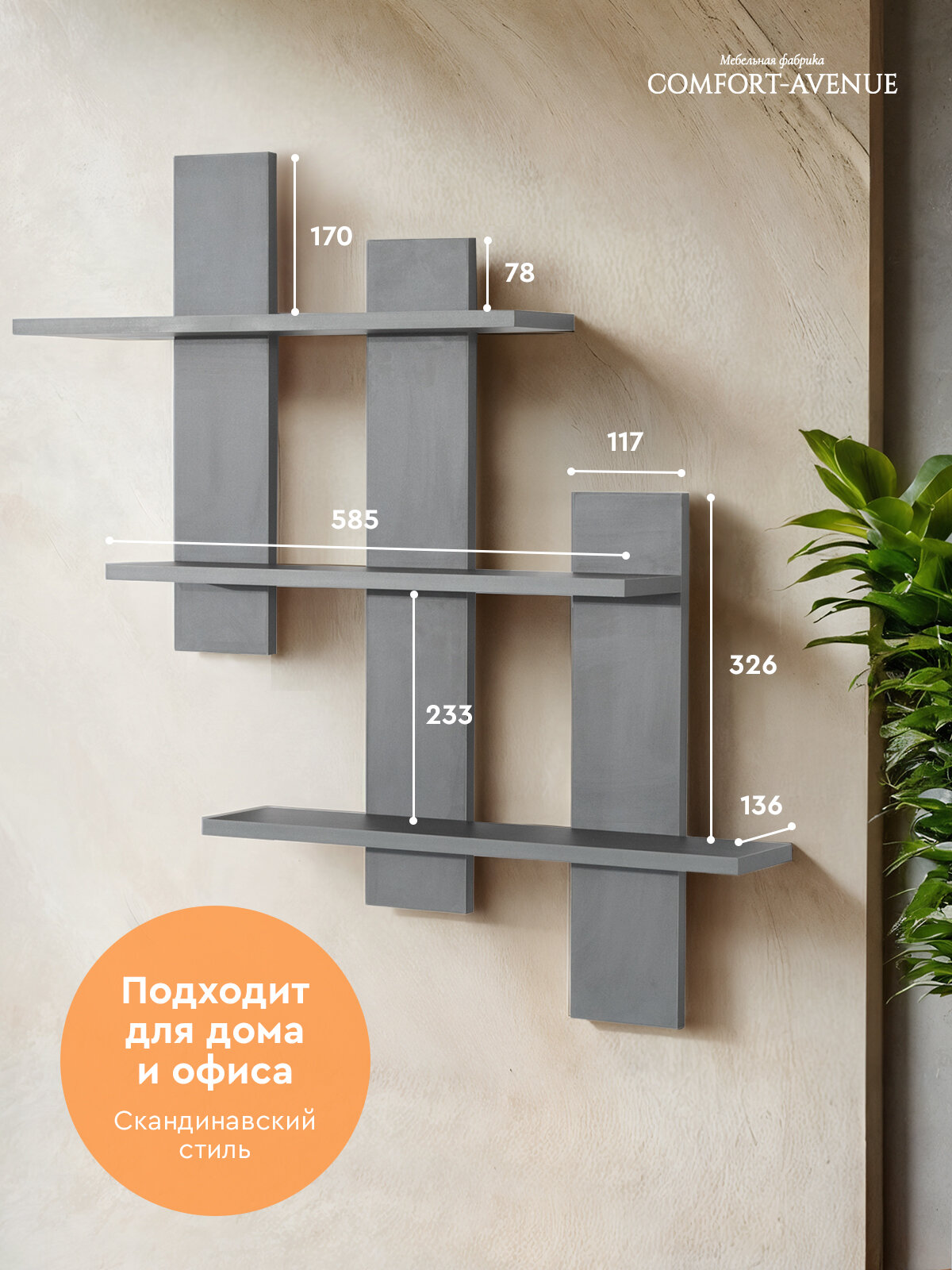 Полка настенная Comfort-Avenue "Кантри", ЛДСП, настенная, графит интересное: