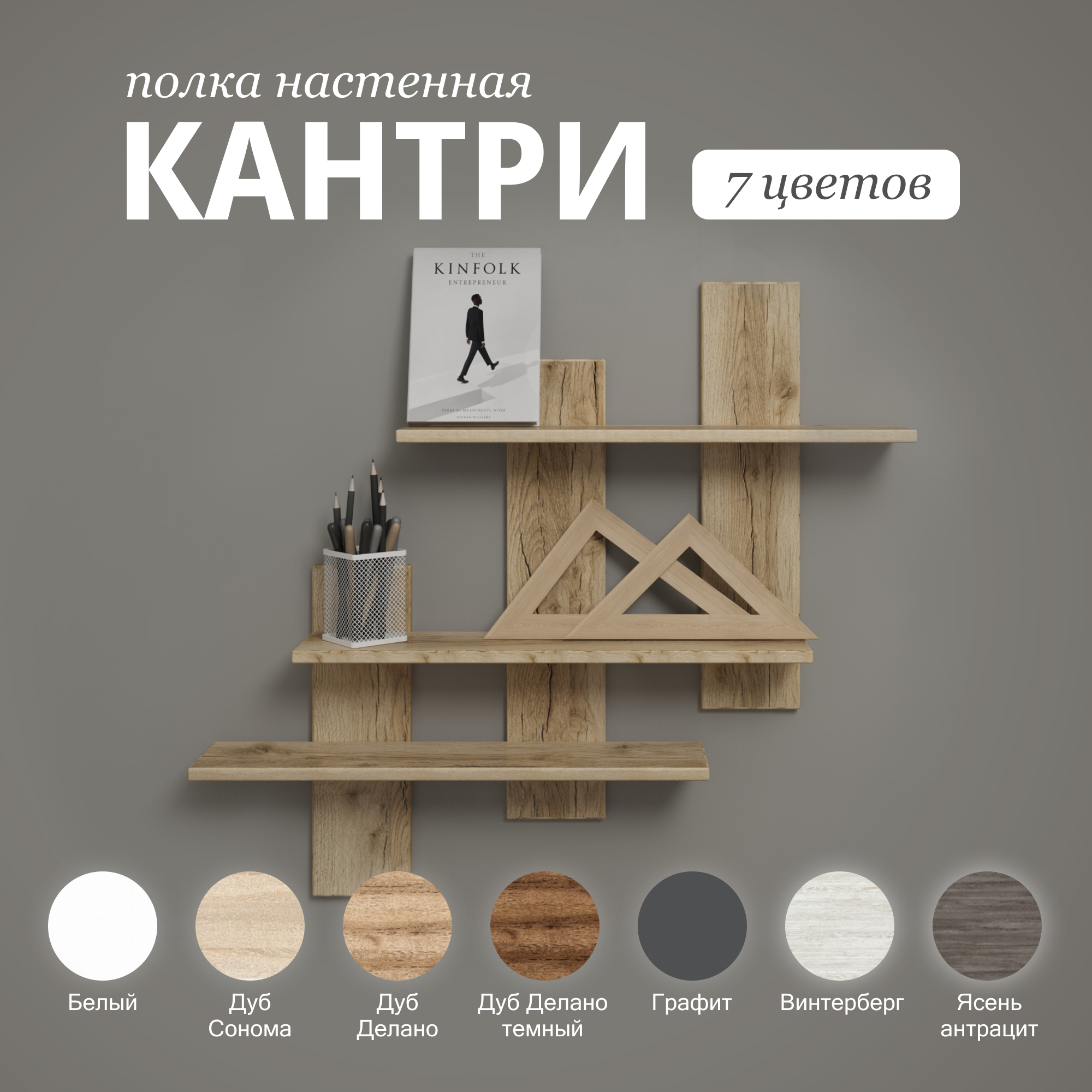 Полка настенная Comfort Avenue "Кантри" 82x85,5x13,6, ЛДСП, Ясень Антрацит 4424