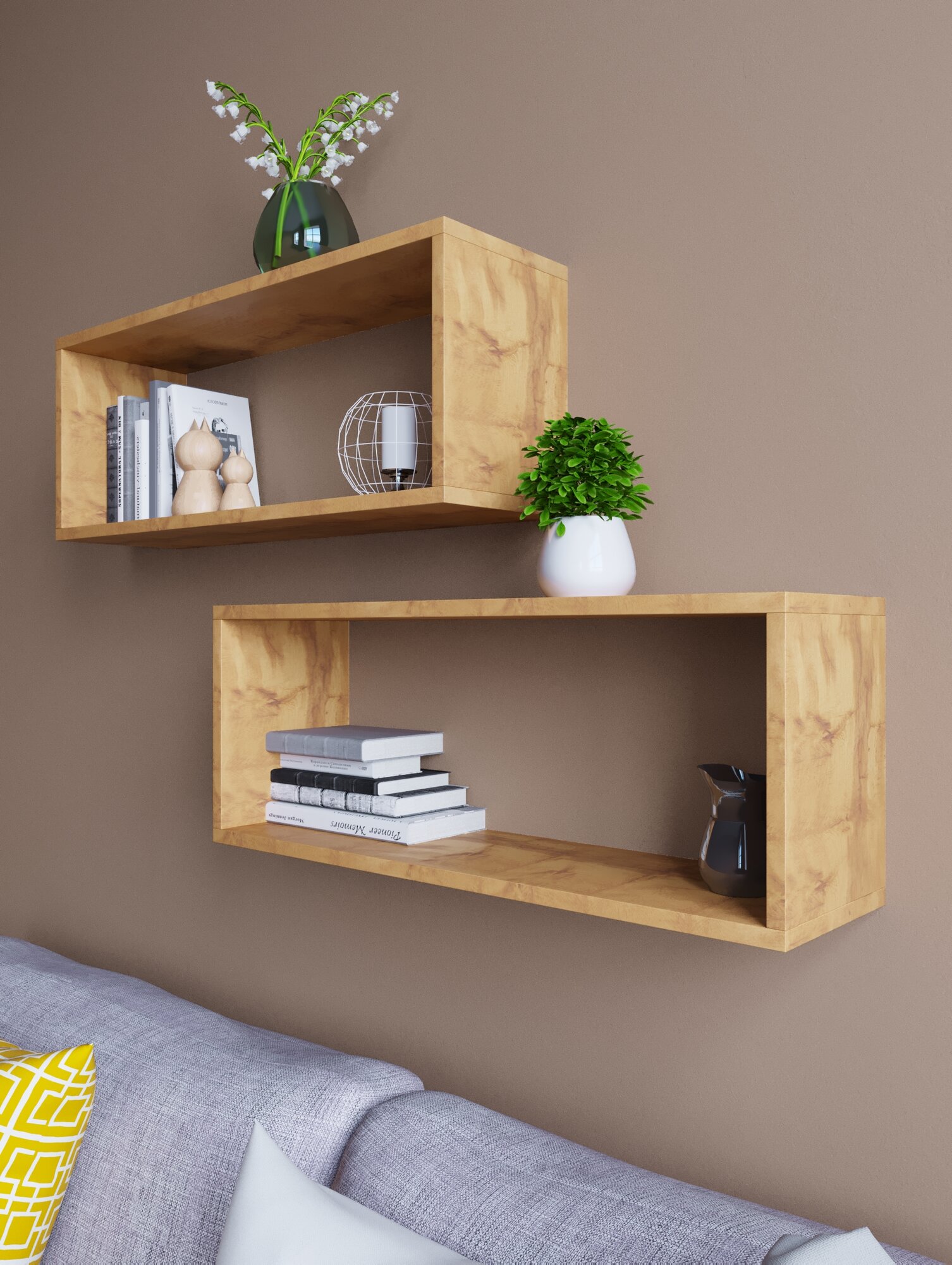 Книжная полка "Скандинавский стиль", ЛДСП, серая, настенная, 70x27x20 см, 2 шт.