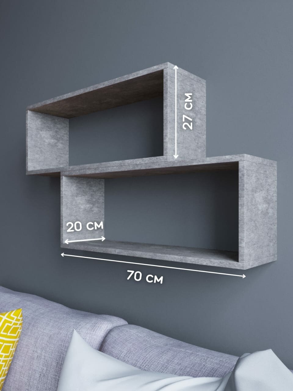 Книжная полка "Скандинавский стиль", ЛДСП, серая, настенная, 70x27x20 см, 2 шт. интересное: