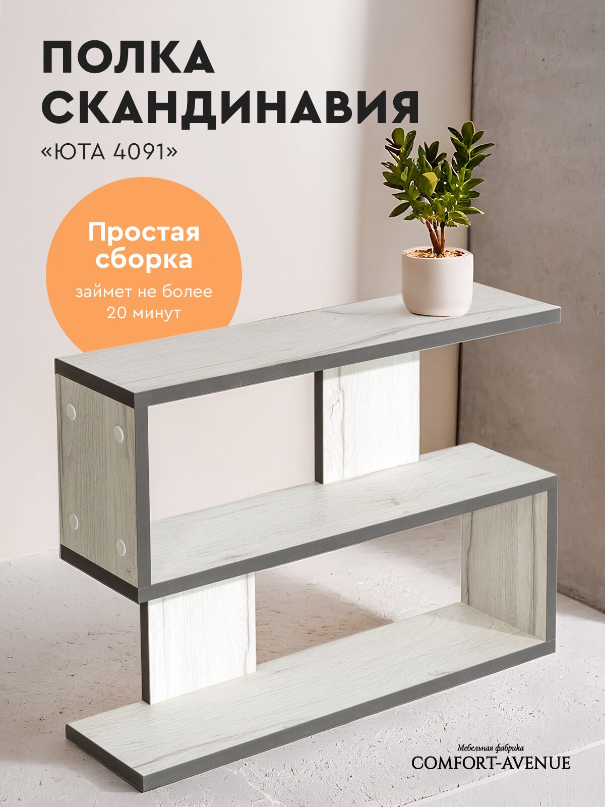 Ниже Вы можете прочитать отзывы на Полка Comfort Avenue "Скандинавия" 60x42x15 цвет Юта 4091 кромка Графит 3114, ознакомится с подробными характеристиками, посмотреть интересные обзоры и фотографии на Полка Comfort Avenue "Скандинавия" 60x42x15 цвет Юта 4091 кромка Графит 3114.