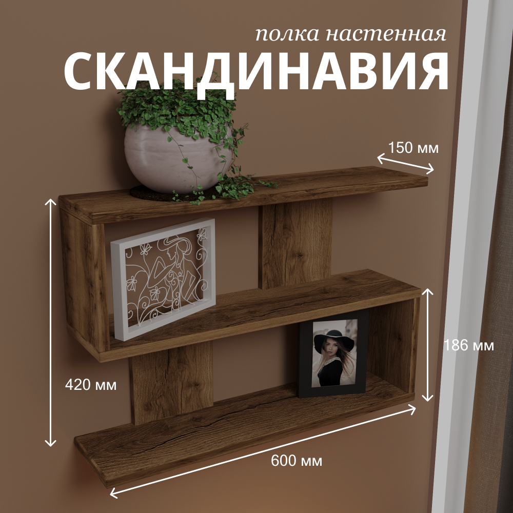 Полка Comfort Avenue "Скандинавия" 60x42x15 Дуб Амберг Тёмный 4089 / Винтерберг