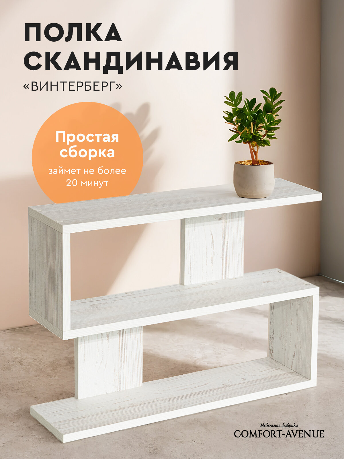 Полка Comfort-Avenue "Скандинавия", ЛДСП, открытая, настенная, 60х42х15 см