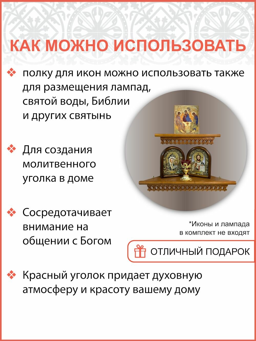 Полка настенная для икон угловая ажурная .057 интересное:
