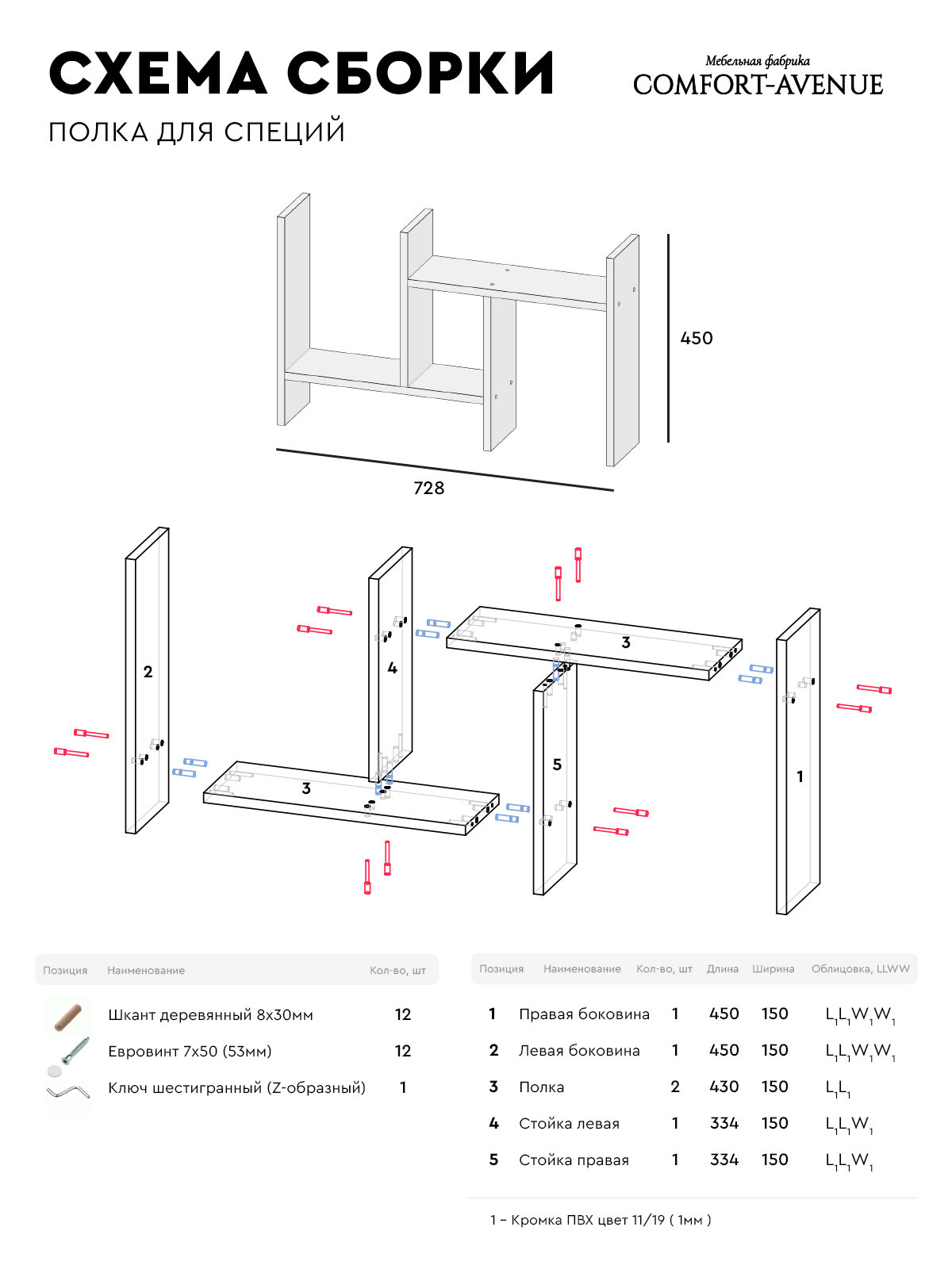Полка настольная Comfort Avenue "Специи" ЛДСП 73x45x15 Юта 4091