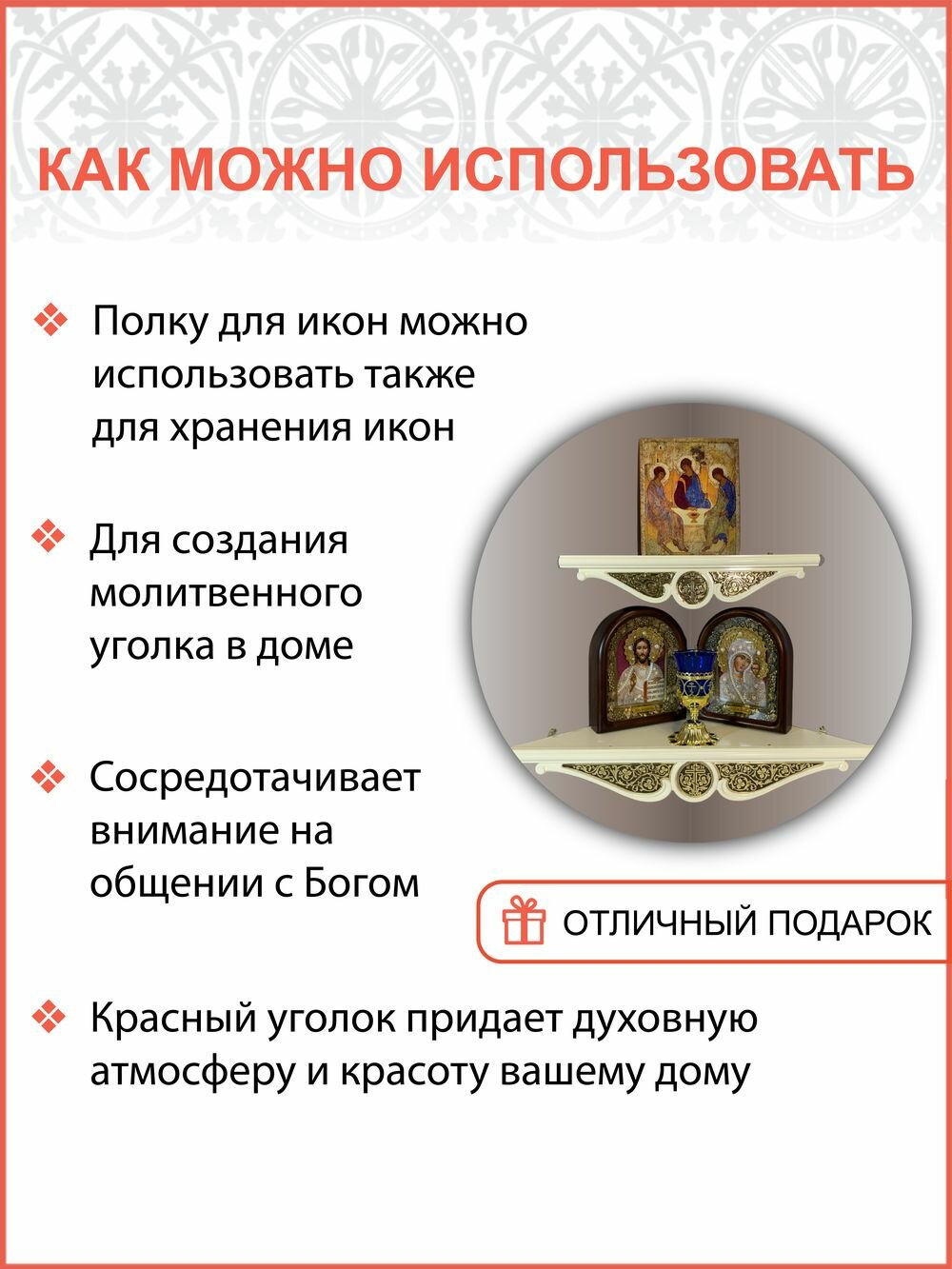 Полка настенная угловая для икон с басмой малая 016 интересное: