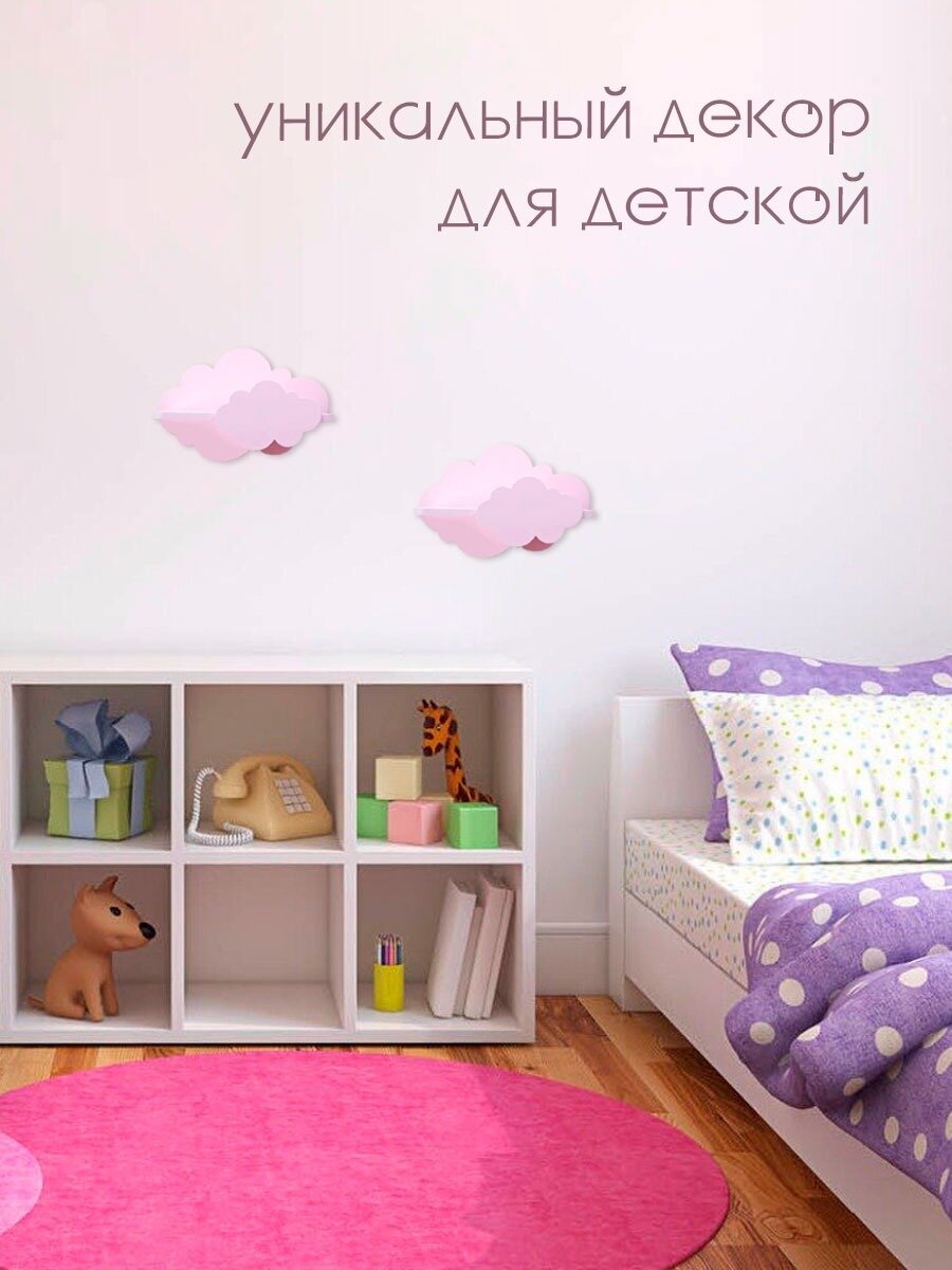 Полка-облако детская настенная прямая деревянная крашеная - 2шт розовые 25х15х20 см интересное: