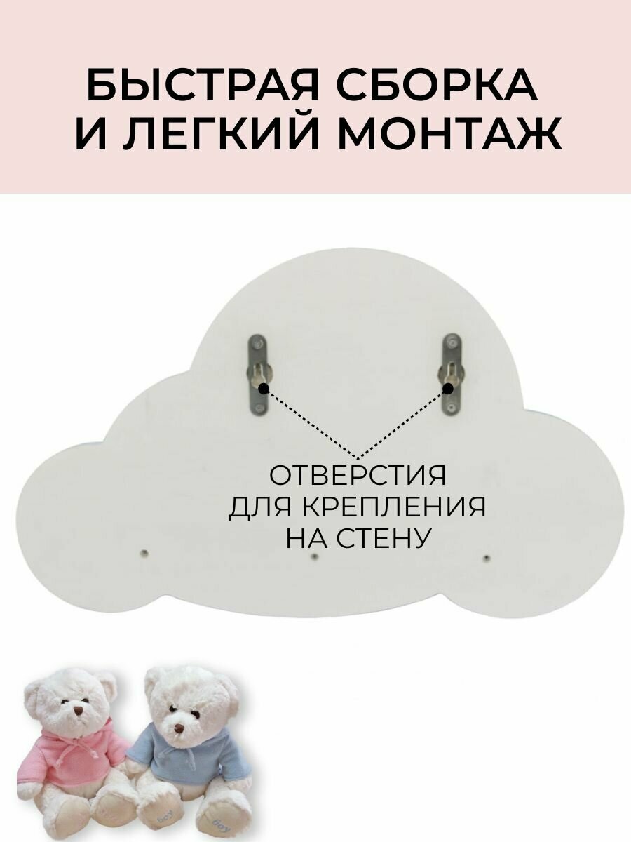 Навесная полка Fortuna_Kids "Облако", МДФ, белая, 30x80x15,6 см