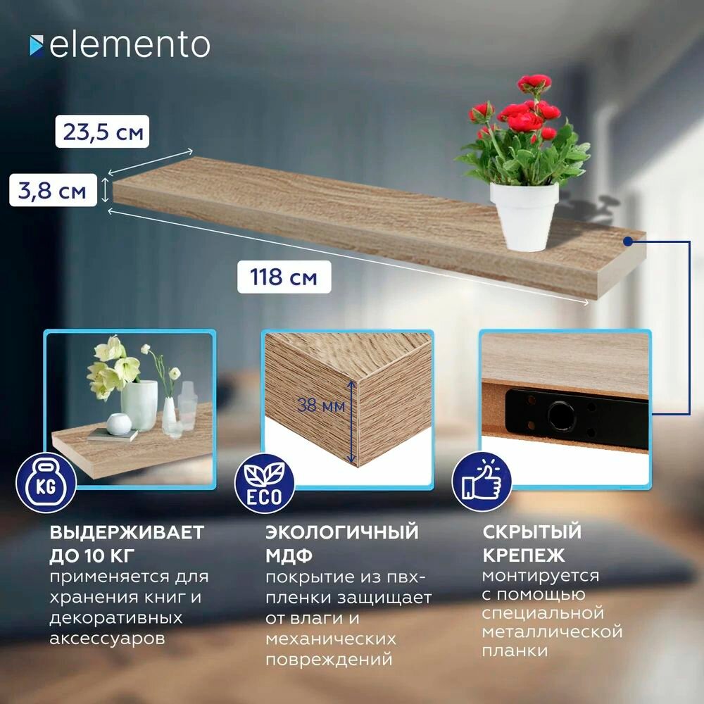 Полка со скрытым креплением 1180х235х38 мм дуб сонома интересное: