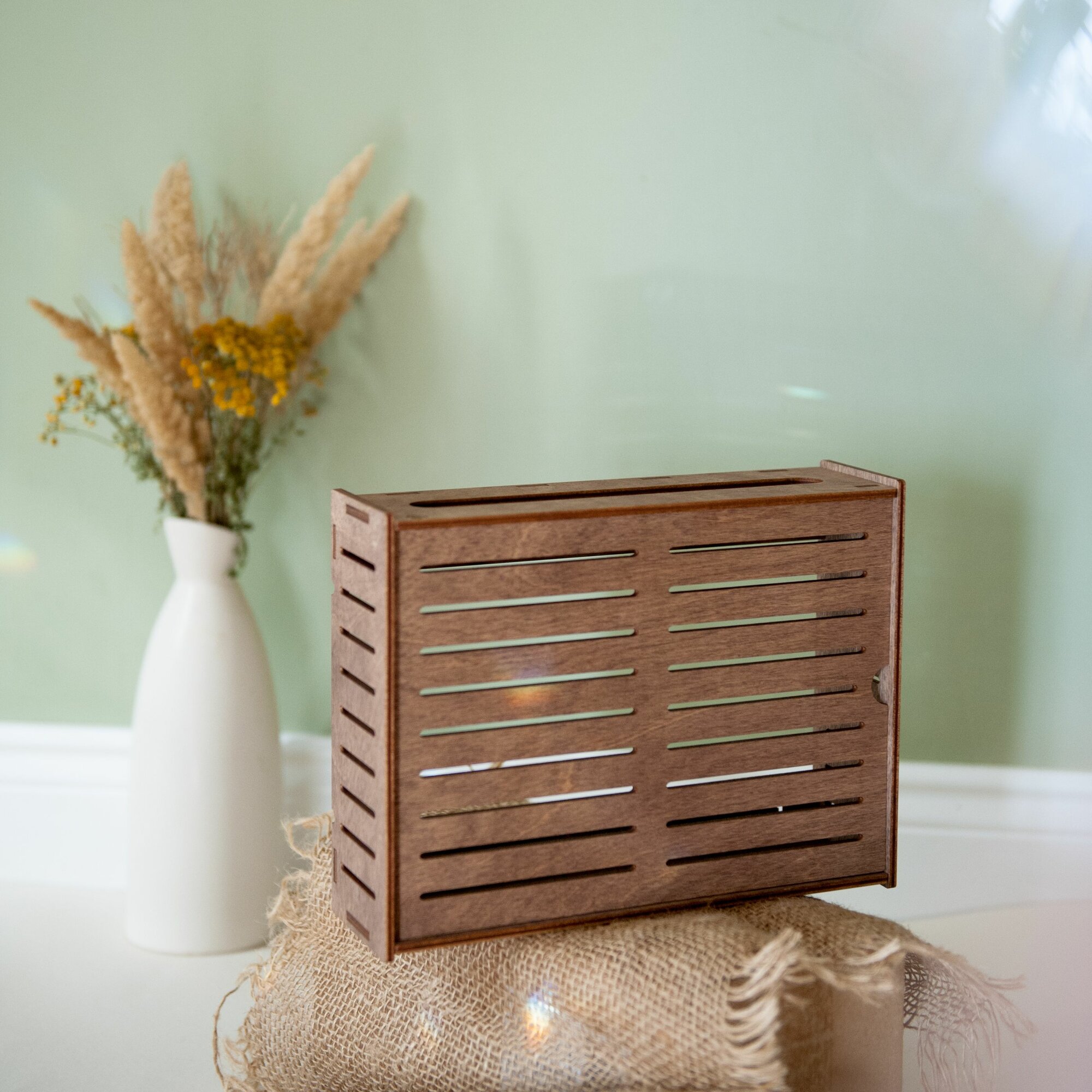 Полка короб на стену для Wi-Fi Роутера деревянная белая 38х19х9 см