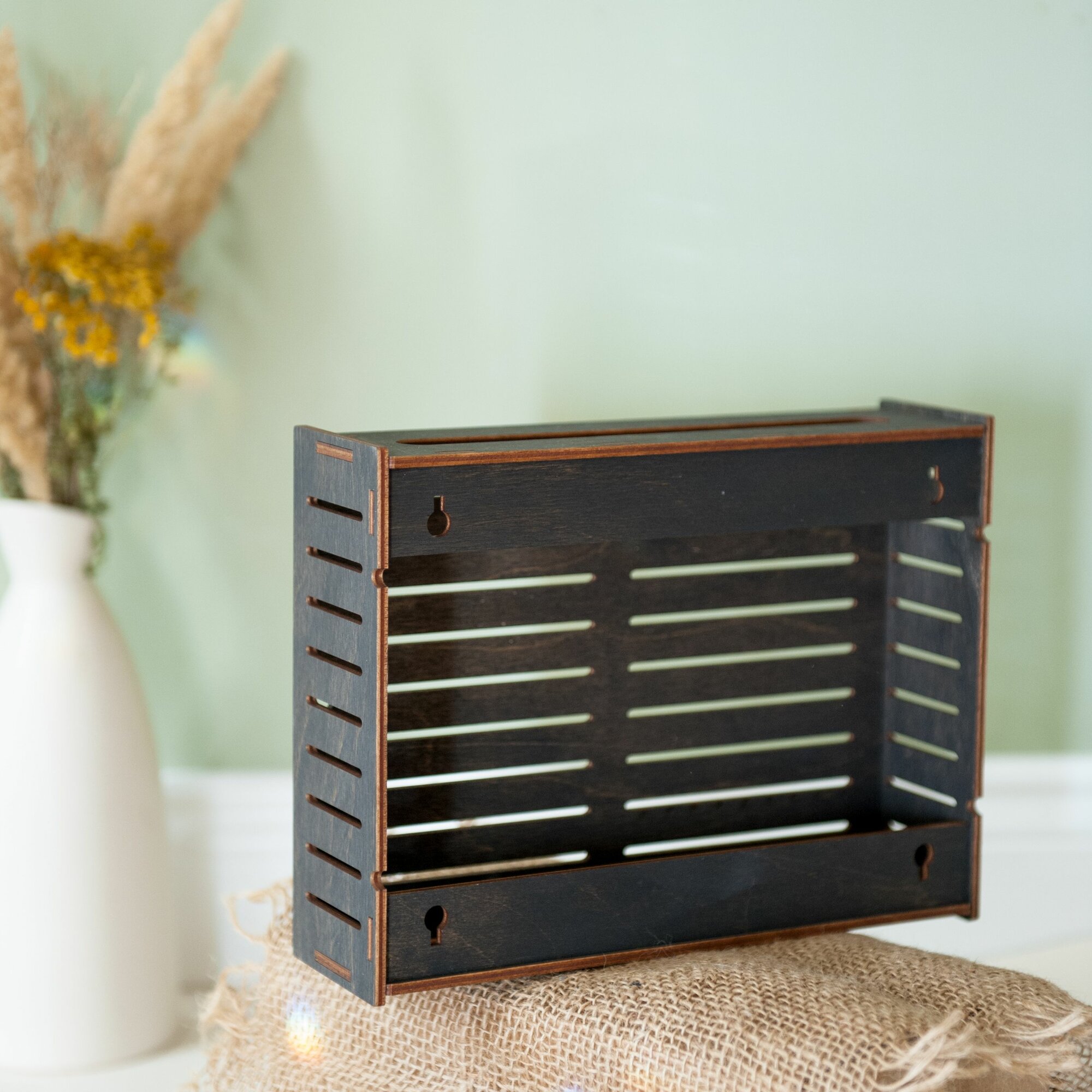 Полка короб для Wi-Fi Роутера на стену венге 25х19х7 см Bezusoff
