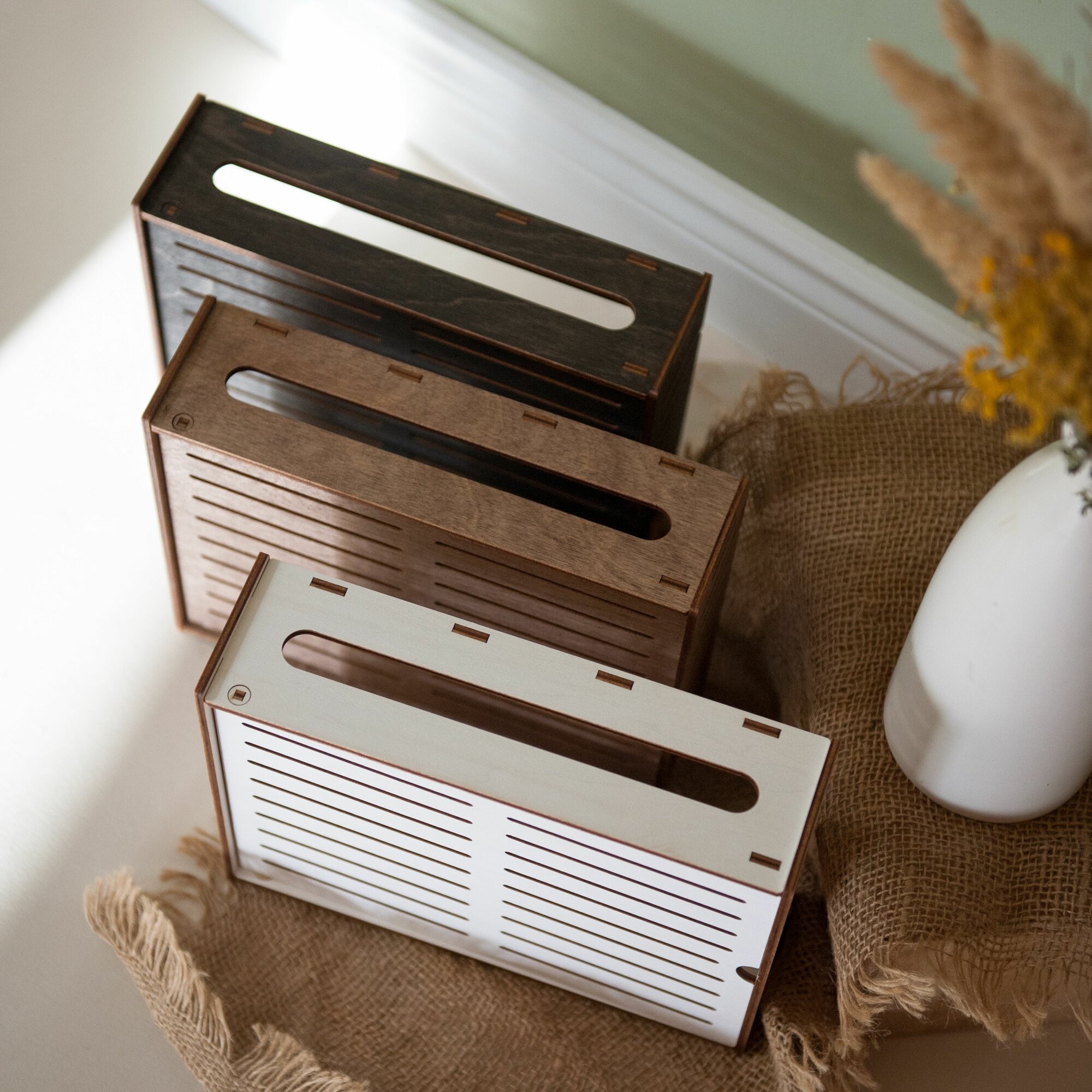 Полка короб на стену для Wi-Fi Роутера деревянная белая 38х19х9 см