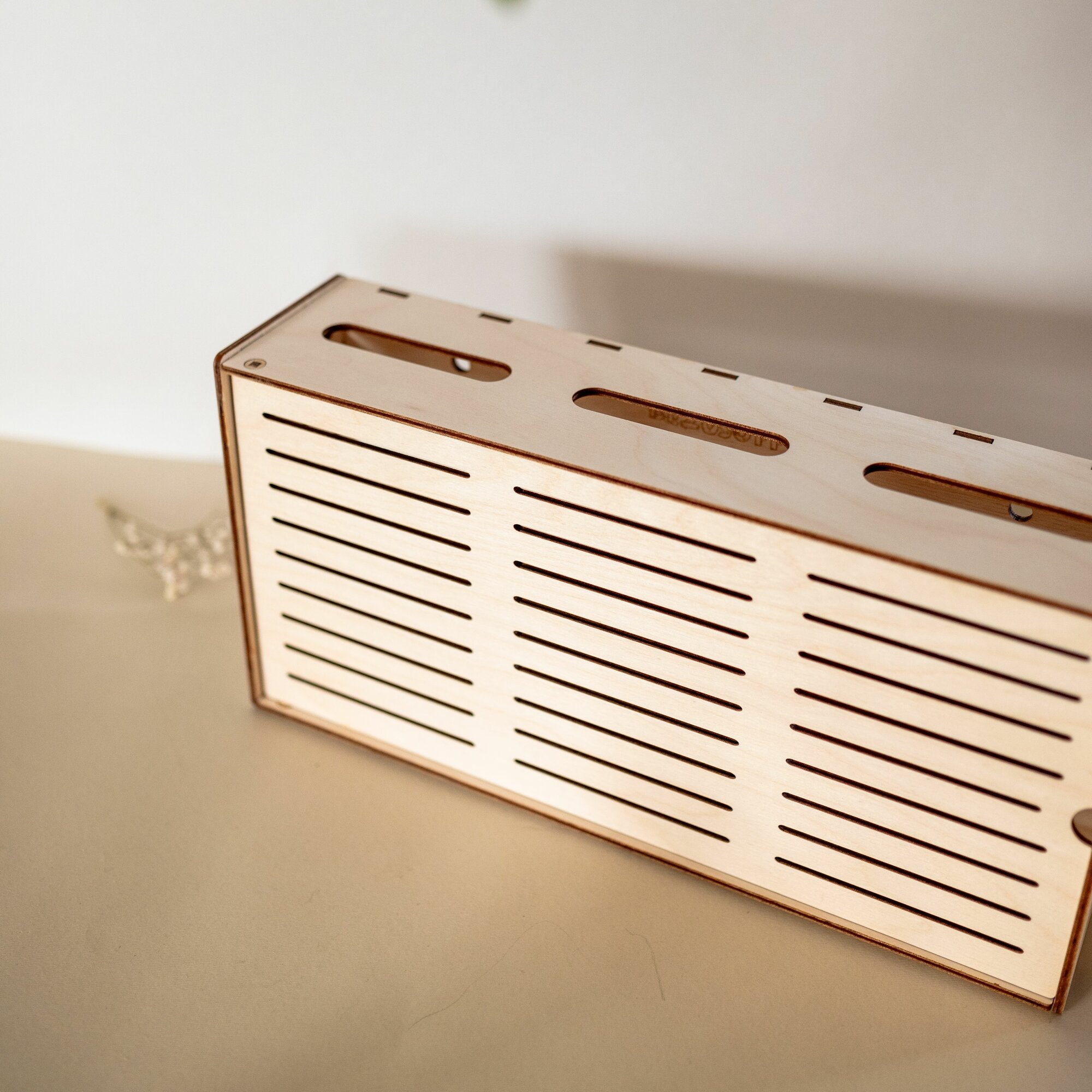 Купить Полка короб на стену для Wi-Fi Роутера деревянная бежевая 38х19х9 см