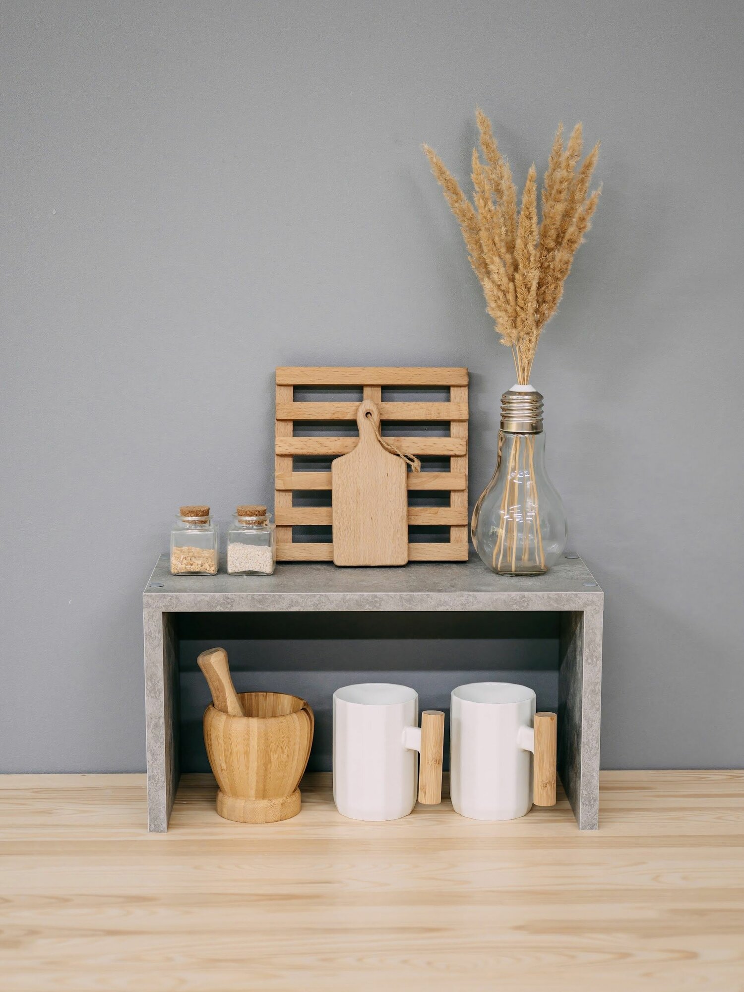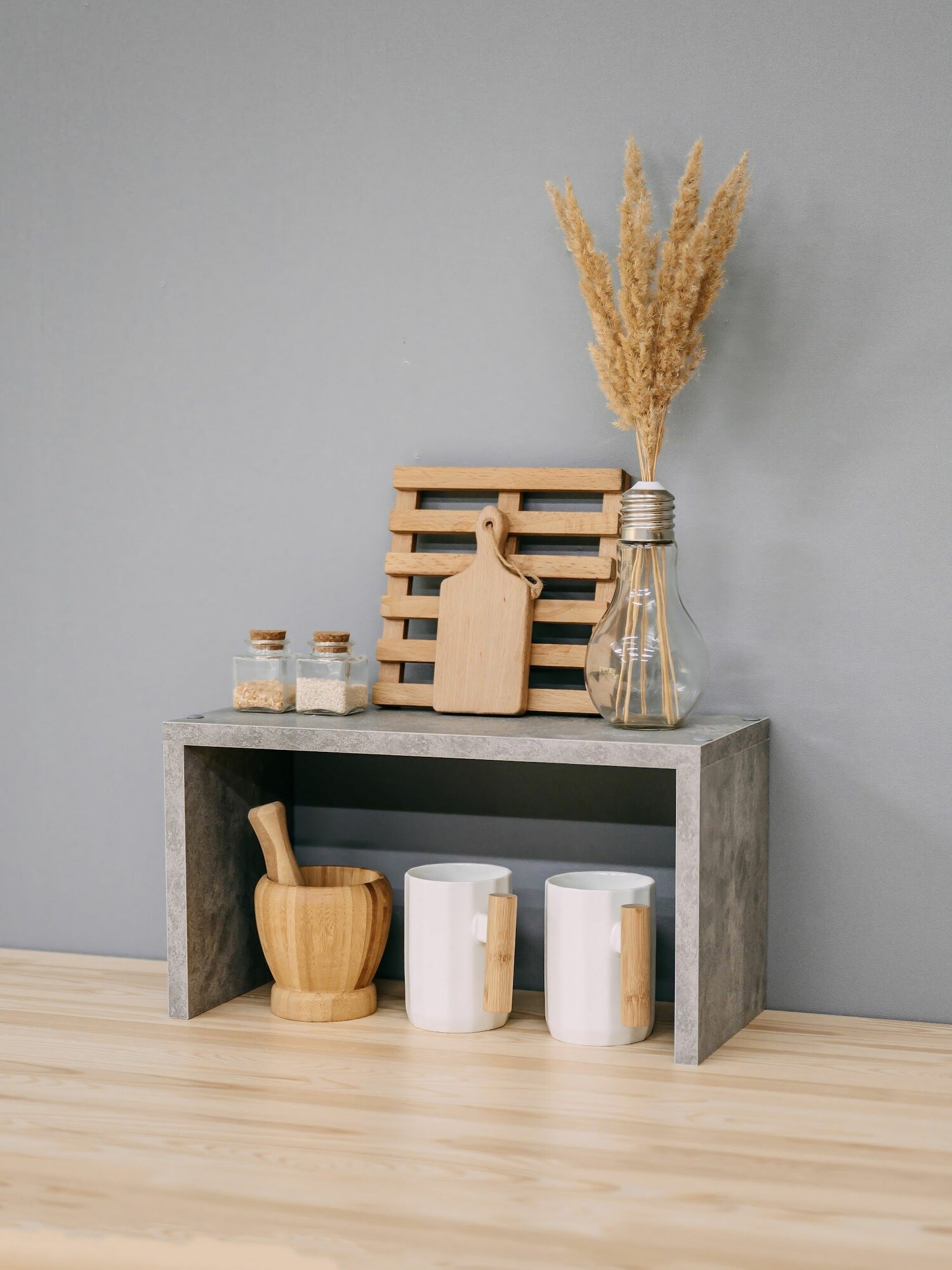 Полка настольная для кухни, для ванной деревянная, подставка для специй на стол 40*22*18 см