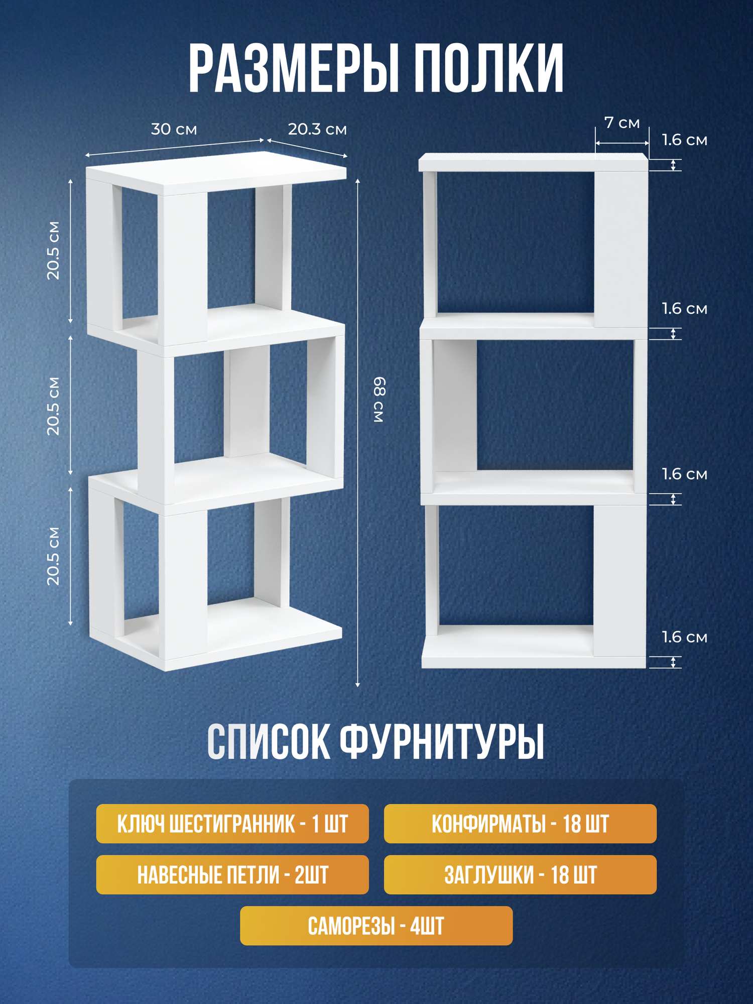 Полка Conset "Этажерка", белый, 1 шт, навесная, для книг и цветов, ЛДСП, 68х30х20,3 интересное: