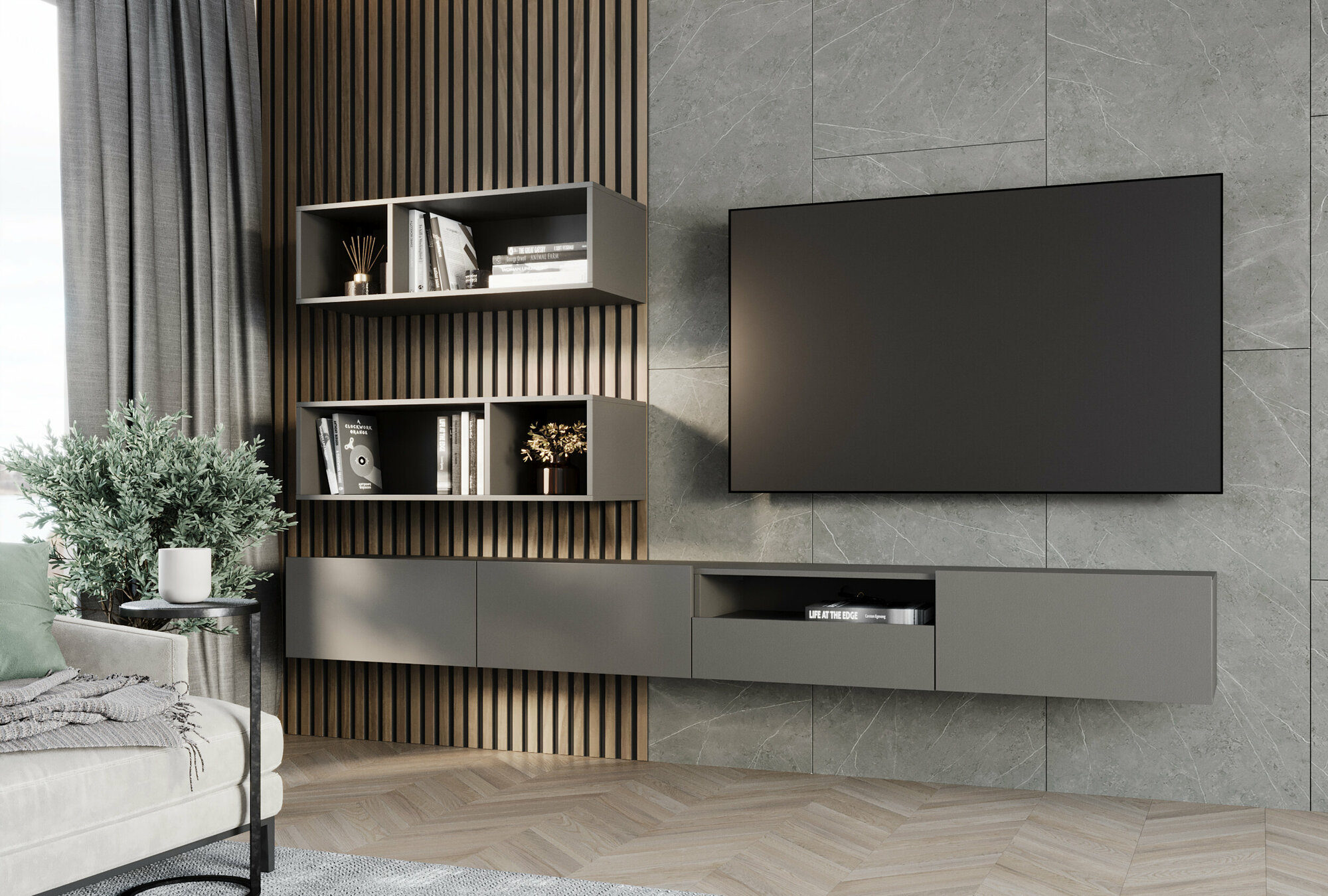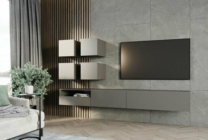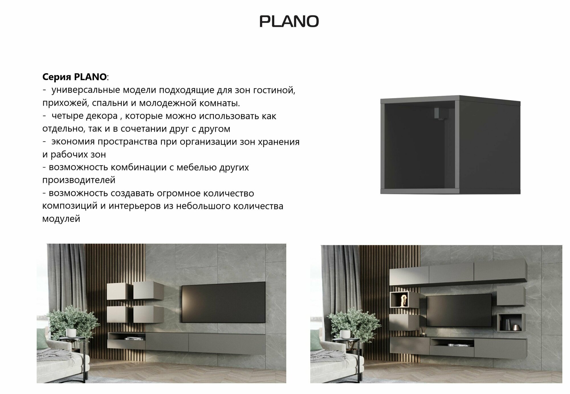 Полка настенная, навесной модуль в гостинную PLANO T-3 Серый Графит, 30 х 30 х 35 см (ШхВхГ) интересное:
