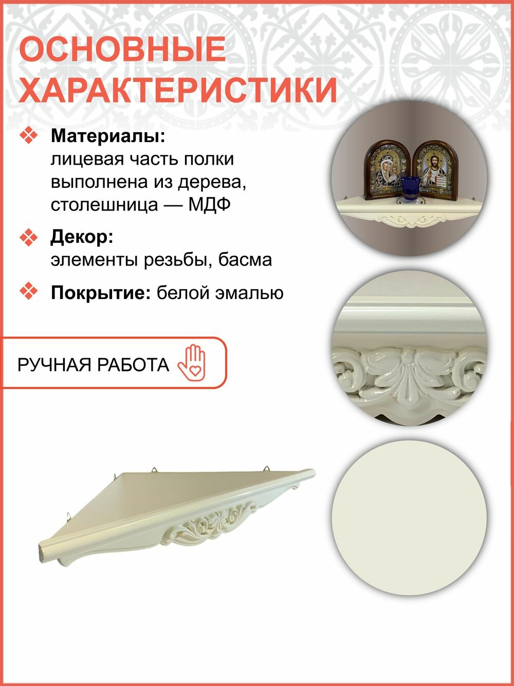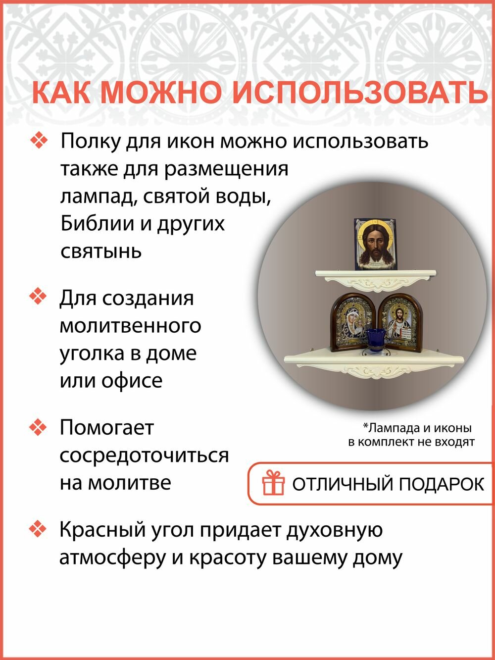 Ниже Вы можете прочитать отзывы на Полка настенная угловая для икон фигурная 004, ознакомится с подробными характеристиками, посмотреть интересные обзоры и фотографии на Полка настенная угловая для икон фигурная 004.
