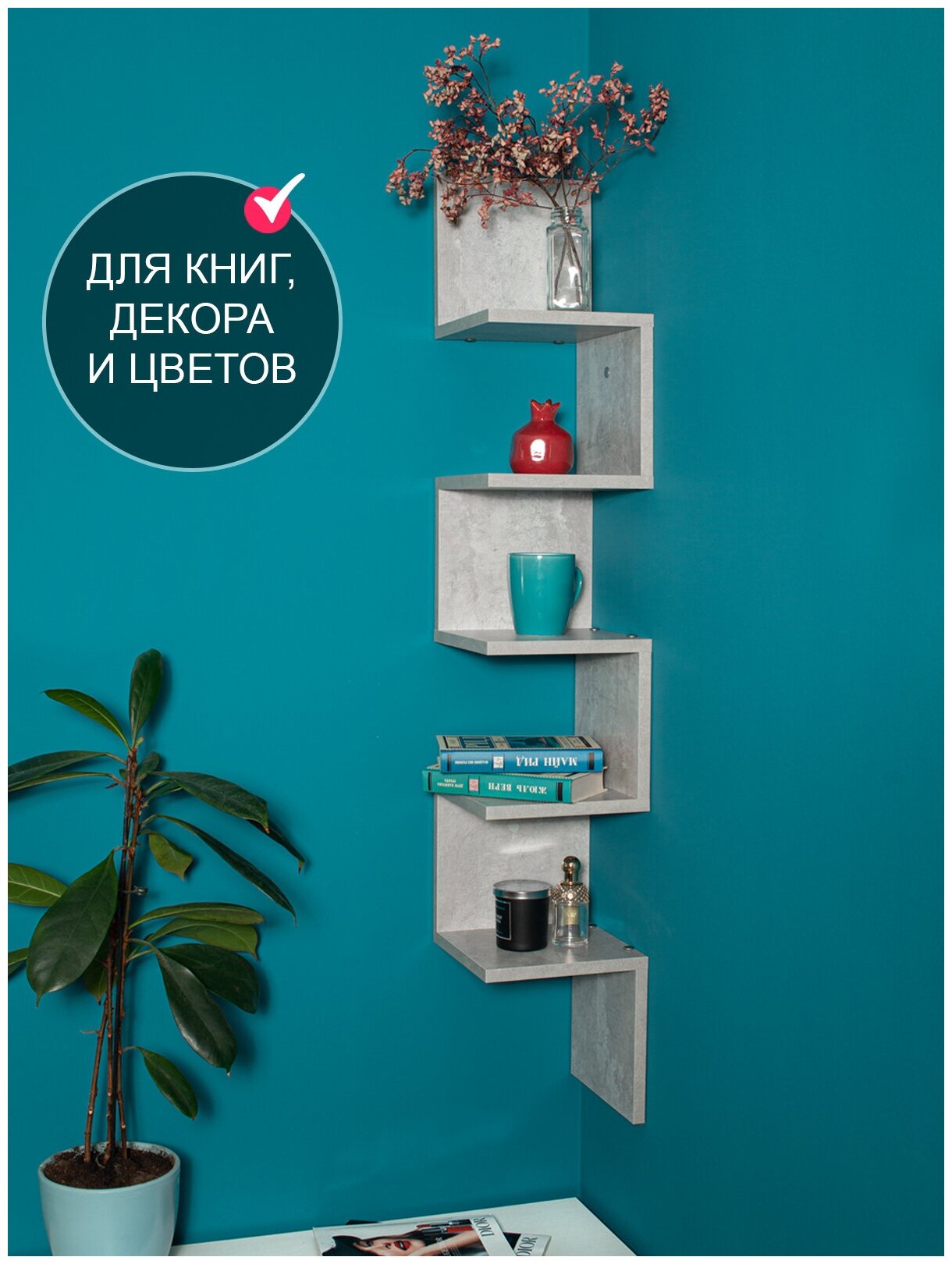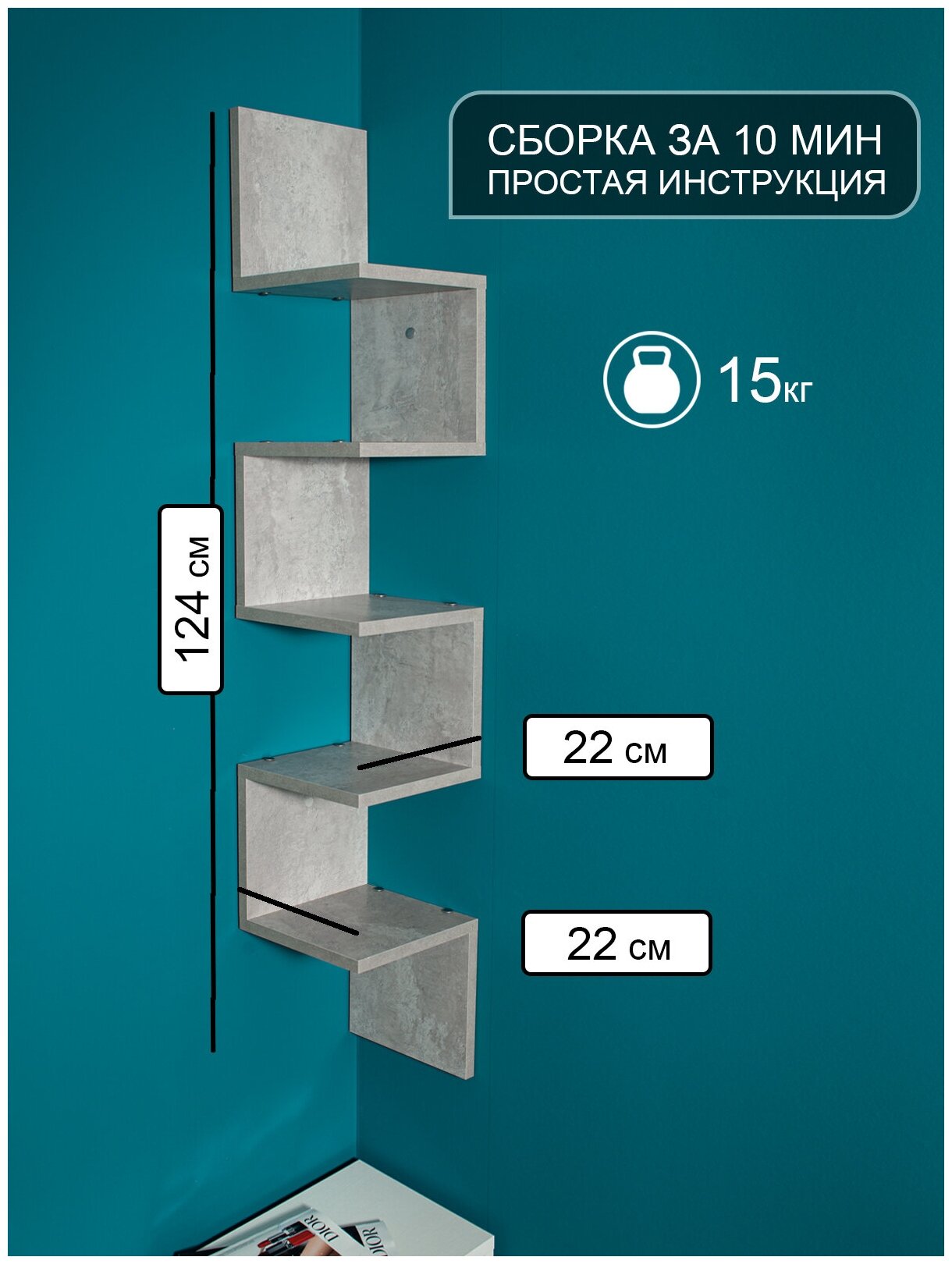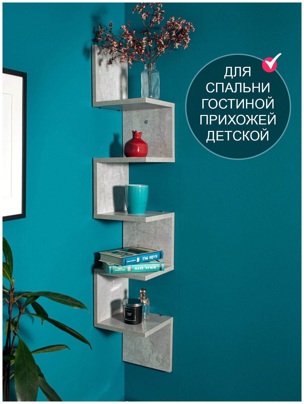 Настенная угловая полка Том Полкер "Ритм" серая интересное: