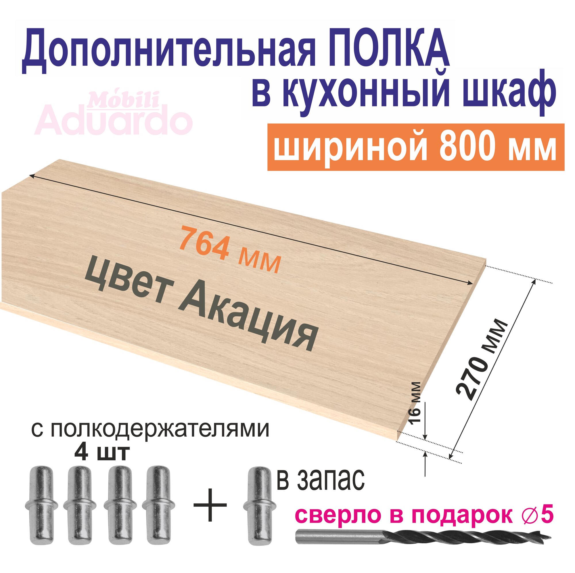 Полка Дополнительная в Кухонный, Верхний шкаф 800 мм (Комплект 2шт. -6%) 764 х 270 х 16мм Цвет: H1277 Акация Лэйклэнд Св