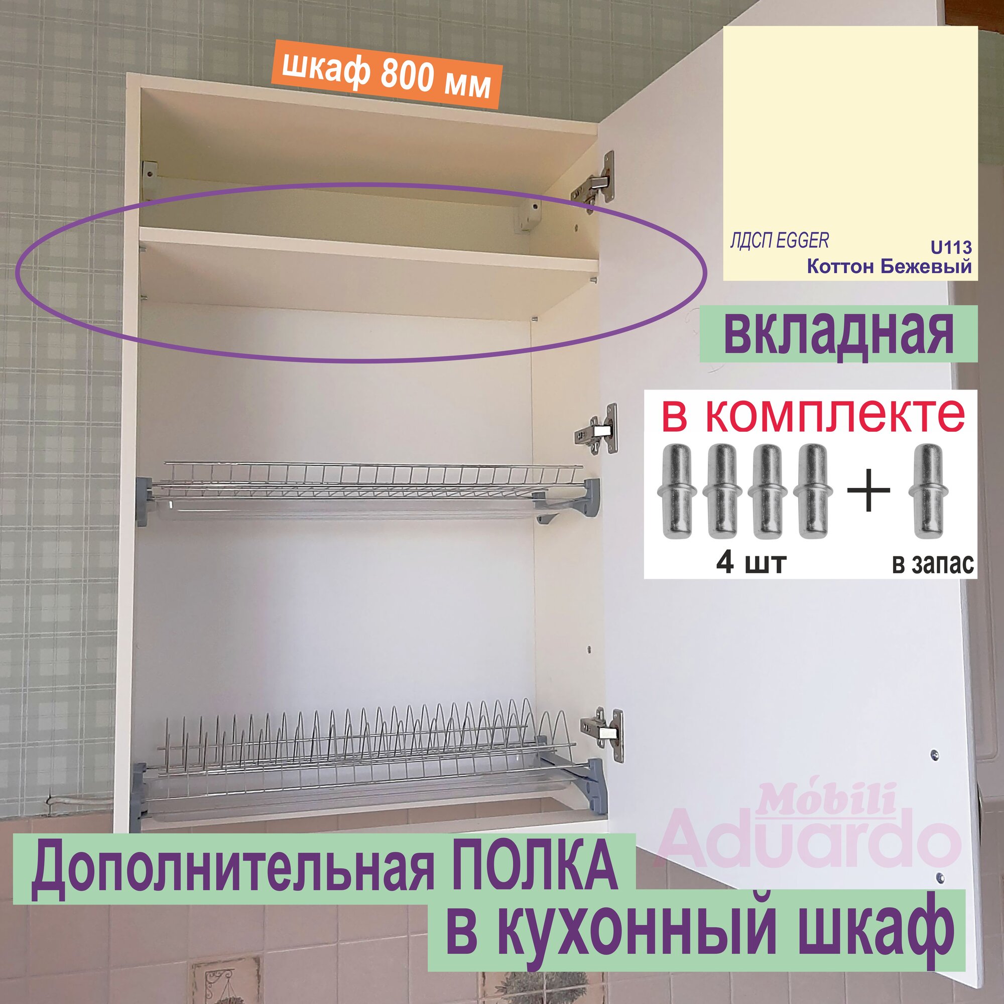 Купить Полка Дополнительная в Кухонный, Верхний шкаф 800мм, Вкладная 764 х 270 х 16 мм Цвет: Бежевый или Ванильный, 1шт