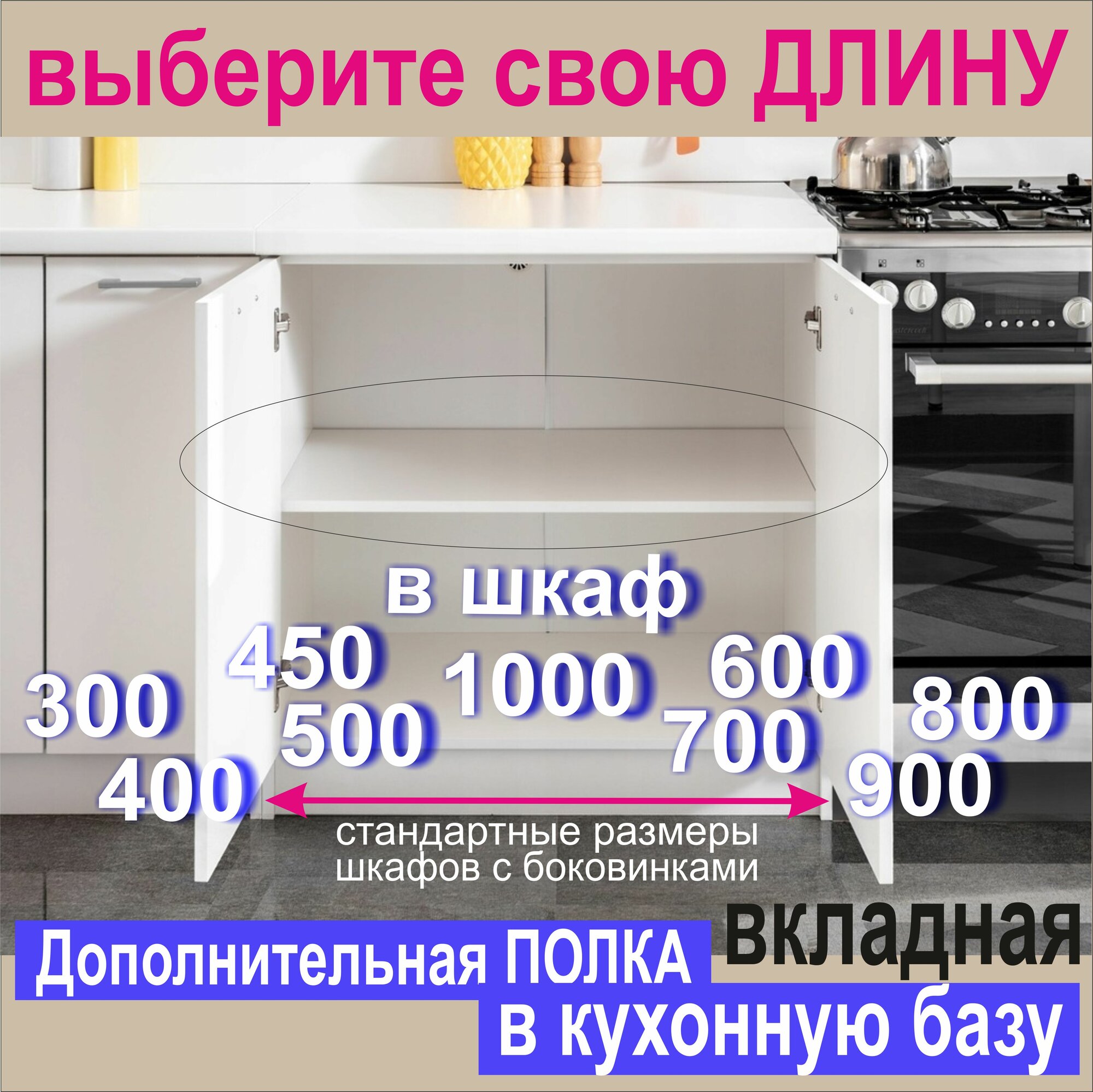 Полка Дополнительная в Кухонную Базу 1000мм (1 м), Вкладная 964 х 440 х 16 мм; Цвет: W1000 Белый Премиум, 1шт.