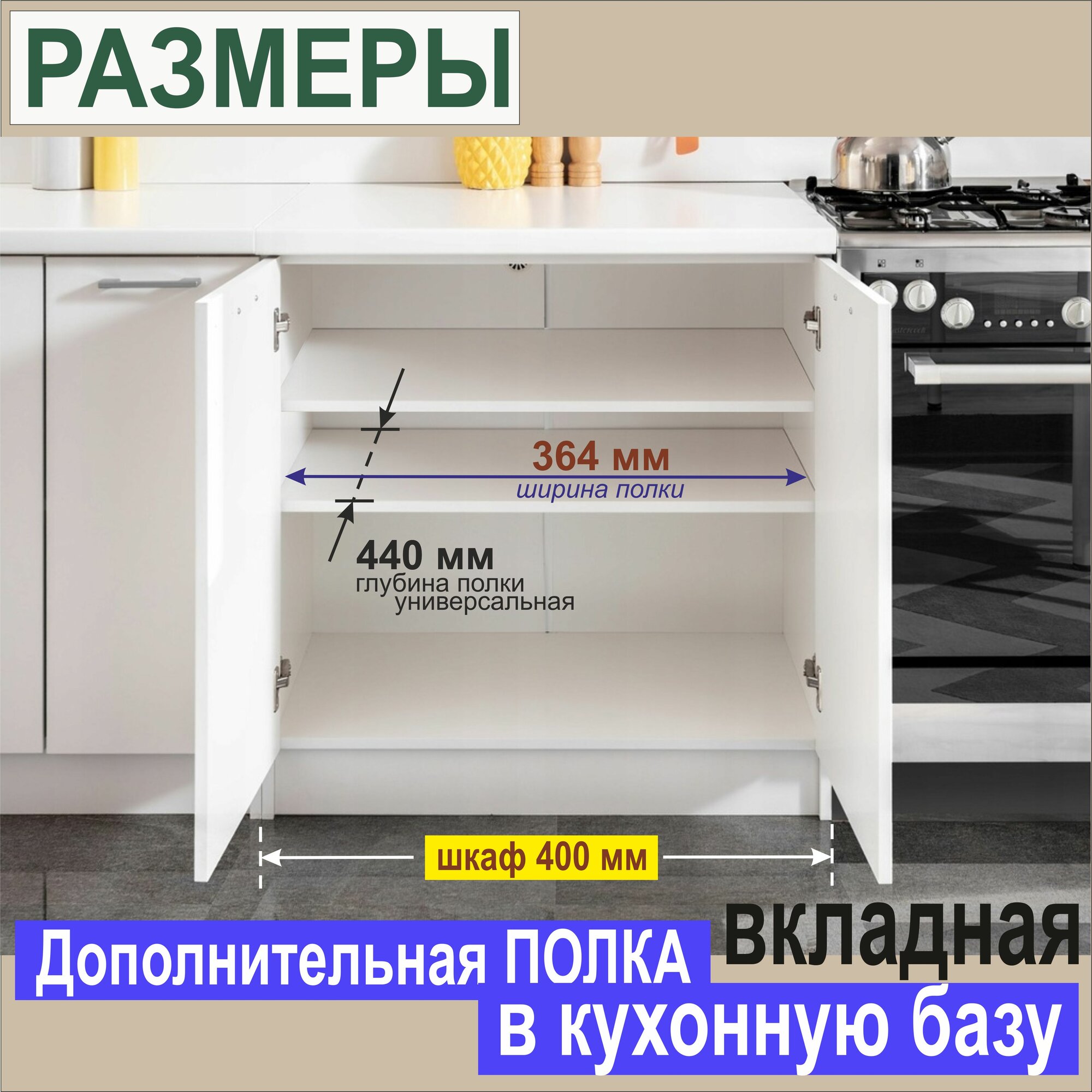 СохранитьПолка Дополнительная (Комплектом 2 шт – 6 %) в Кухонную Базу 400мм (364 х 440 х 16 мм) Цвет: W1000 Белый Премиум, 2 шт. интересное: