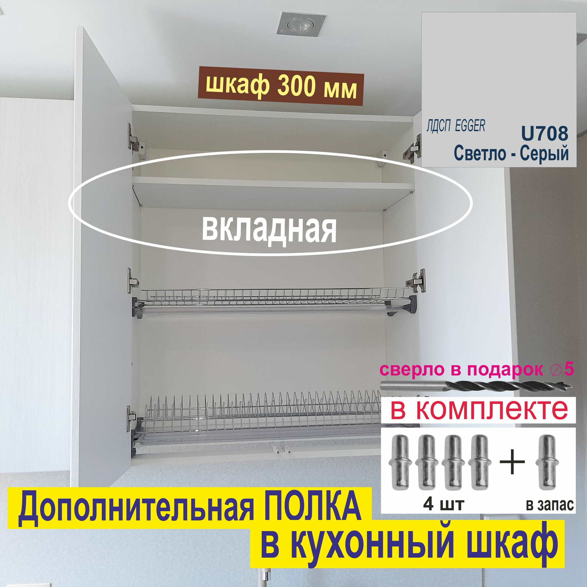 Полка Дополнительная в Кухонный, Верхний шкаф 300мм, Вкладная 264 х 270 х 16 мм; Цвет: Светло-Серый U708, 1шт.