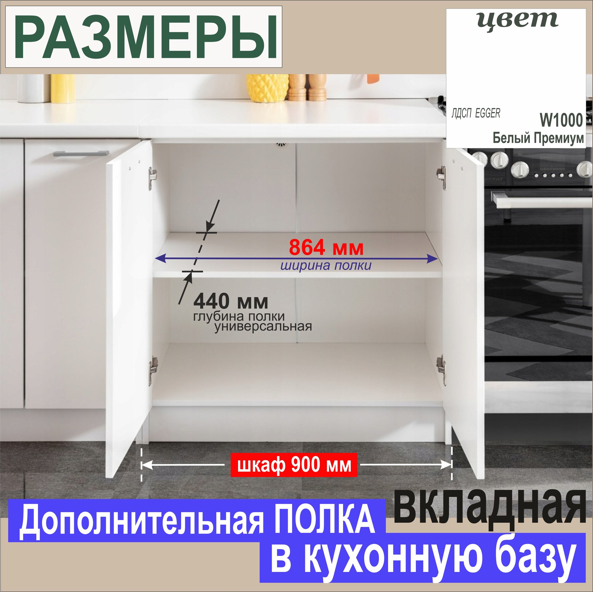 СохранитьПолка Дополнительная в Кухонную Базу 900мм, Вкладная 864 х 440 х 16 мм; Цвет: W1000 Белый Премиум, 1шт. интересное: