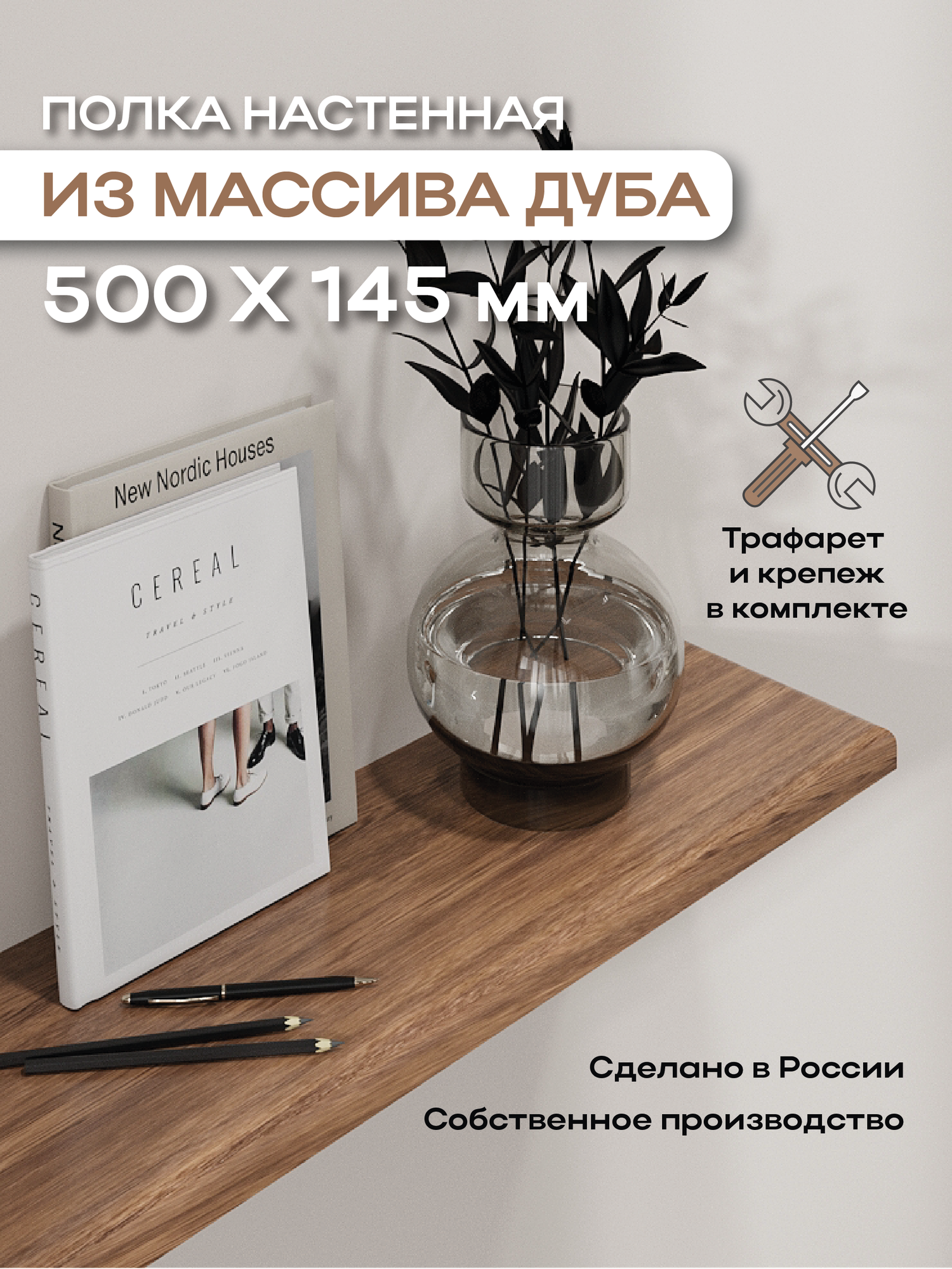 Полка настенная Верхушки на опушке, из массива дуба, длина 500мм интересное: